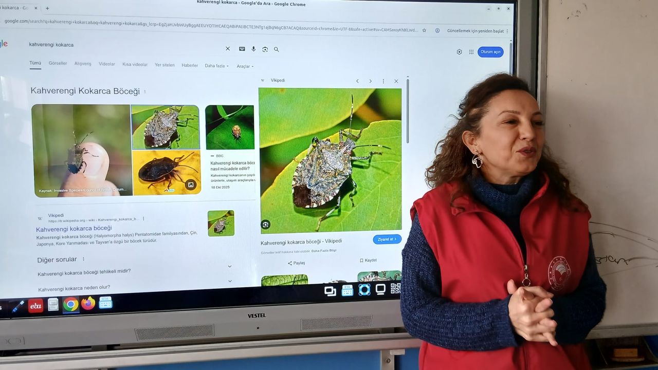 Şehit Burhan Yazıcı İlkokulu'nda yapılan etkinlik kapsamında öğrencilere tarımın önemi ve çevre bilincinin yanı sıra kahverengi kokarca ile mücadele yöntemleri hakkında bilgi verildi.