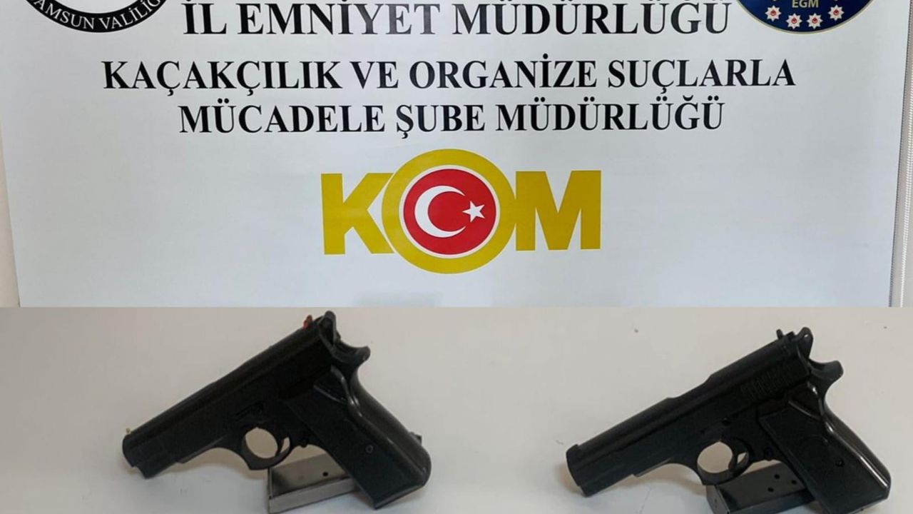 Aramada araçta 2 ruhsatsız tabanca bulundu.