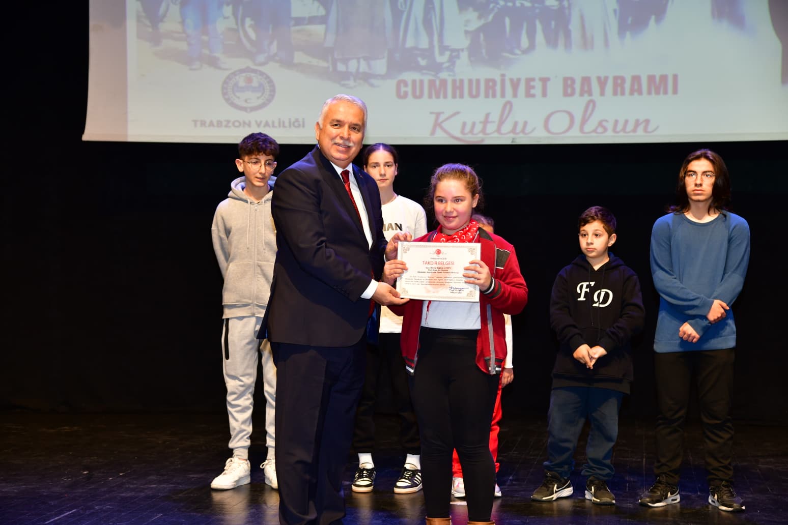 Program, Cumhuriyet temalı yarışmalarda dereceye giren öğrencilere ödüllerinin verilmesiyle devam etti. Ardından öğrenciler tarafından hazırlanan gösteriler, şiir dinletileri ve müzik performansları sahnelendi. Tören, coşkulu katılım ve alkışlarla sona erdi.