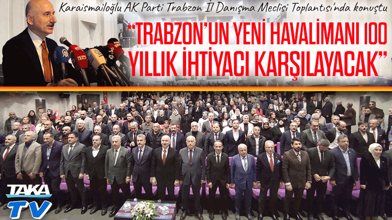 AK Parti İl Danışma Meclisi’nde konuşan Adil Karaismailoğlu, Trabzon’a yapılacak yeni havalimanı, çevre yolu, şehir hastanesi ve Uzunkum Yaşam Alanı gibi projelerle ilgili önemli açıklamalarda bulundu. Kültür Yolu Festivali’nin ise Mayıs sonunda yapılacağı duyuruldu. Trabzon’da Hamamizade İhsanbey Kültür Merkezi’nde düzenlenen AK Parti İl Danışma Meclisi Toplantısı, geniş katılımla gerçekleşti. TBMM Bayındırlık, İmar, Ulaştırma ve Turizm Komisyonu Başkanı ve AK Parti Trabzon Milletvekili Adil Karaismailoğlu, toplantıda Trabzon’da yürütülen büyük ölçekli projelere ilişkin güncel bilgiler paylaştı.