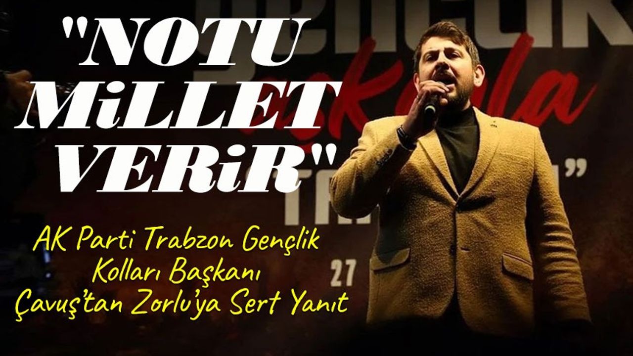 AK Parti Trabzon Gençlik Kolları Başkanı Mahmut Çavuş, CHP’li Ortahisar Belediye Başkan Yardımcısı Cüneyit Zorlu’nun sosyal medya üzerinden yaptığı paylaşımlarda AK Parti’yi eleştirmesine tepki gösterdi. Çavuş, “AK Parti’nin karnesini tutma yetkisini Cüneyit Zorlu’ya kim verdi bilmiyoruz ama şunu çok iyi biliyoruz; bu partinin notunu sadece millet verir” diyerek, Zorlu’nun açıklamalarına yanıt verdi.