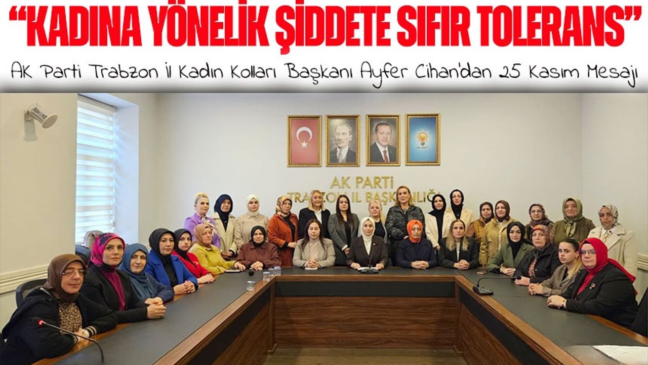 AK Parti Trabzon İl Kadın Kolları Başkanı Ayfer Cihan, 25 Kasım Kadına Yönelik Şiddete Karşı Uluslararası Mücadele Günü kapsamında yaptığı basın açıklamasında, kadına yönelik şiddetle mücadelenin sadece sembolik bir günle sınırlı kalmaması gerektiğini belirtti. Cihan, “Biz bu davayı; kadının izzetini, çocuklarımızın geleceğini, milletimizin dirliğini koruma meselesi olarak görüyoruz” diyerek konuşmasına başladı.