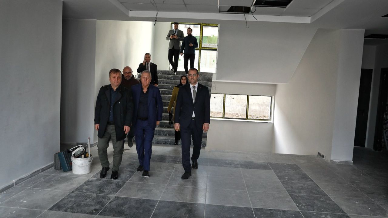 Ekim, beraberindeki İlçe Milli Eğitim Müdürü Mehmet Usta ve iş insanı Suphi Çolak ile Söğütlü Mahallesi'nde yapımı devam eden okul inşaatındaki çalışmalar hakkında bilgi aldı.