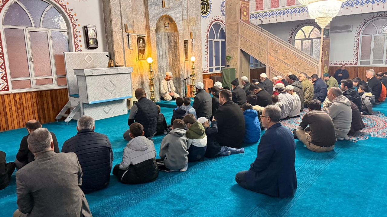 Şadibey Camisinde gerçekleştirilen programda, çocuklar babalarıyla namaz kıldı.