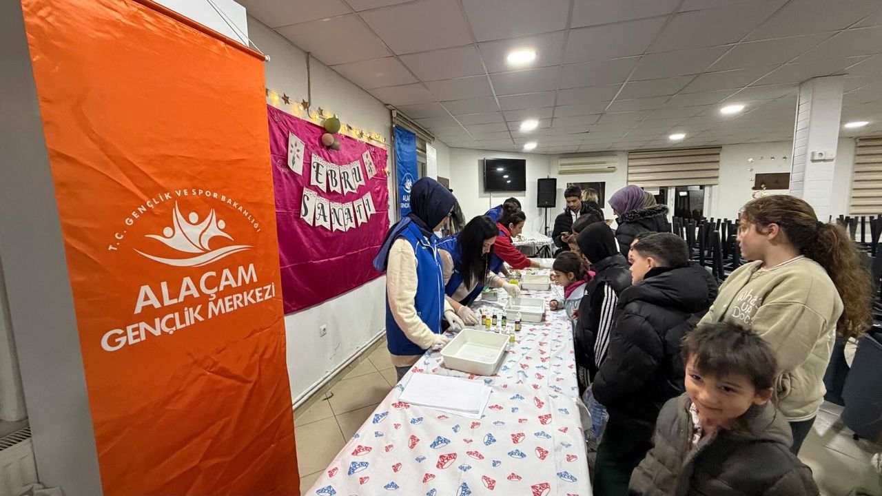 Alaçam Belediyesi ve Alaçam Gençlik Merkezi iş birliğinde Anneler Parkı'nda anne-baba ve çocukların katılımıyla ebru sanatı etkinliği düzenlendi.