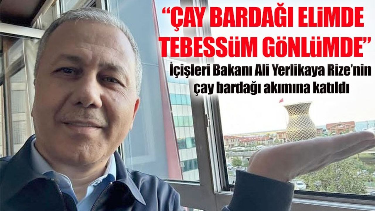 İçişleri Bakanı Ali Yerlikaya, Cumhurbaşkanı Recep Tayyip Erdoğan’ın hafta sonu Rize programına eşlik ettiği sırada dikkat çeken bir sosyal medya paylaşımı yaptı. Yerlikaya, Rize Merkez'deki 29 metrelik dev çay bardağını elinde tutuyormuş gibi poz verdi ve bu kareyi sosyal medya hesabından paylaştı. "Çay bardağı elimde, tebessüm gönlümde" notunu düşen Bakan, sosyal medya kullanıcılarının ilgisini çekti. Bu paylaşım kısa sürede çok sayıda beğeni ve yorum aldı.