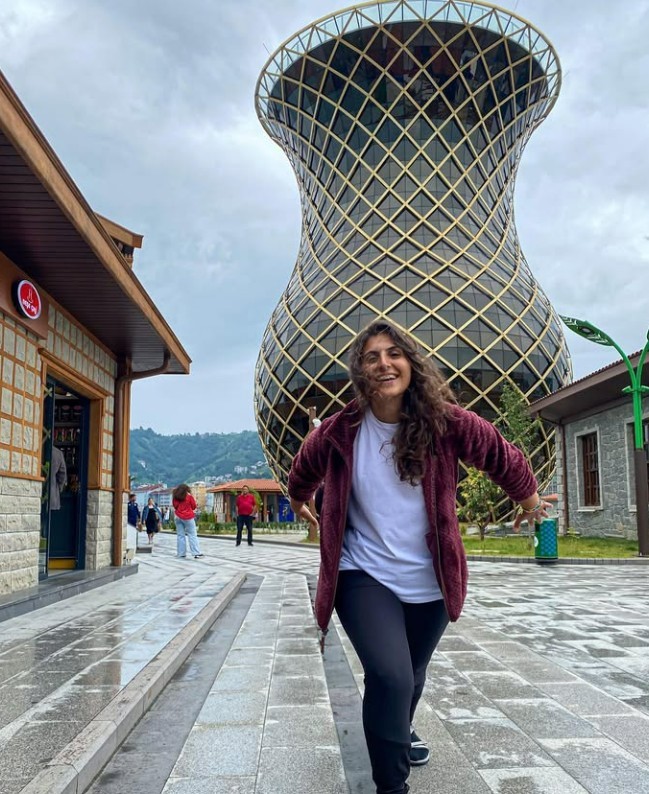 Rize Merkez'de yer alan ve 29 metre yüksekliğe sahip çay bardağı, hem mimarisi hem de sosyal medyada oluşturduğu akımla dikkat çekiyor. Çay Çarşısı'nın tam ortasında bulunan bu dev yapı, yerli ve yabancı turistlerin ilgi odağı olmuş durumda. Ziyaretçiler, çay bardağını ellerindeymiş gibi gösteren farklı açılardan fotoğraflar çekerek sosyal medyada paylaşıyor. Dev çay bardağının içinde kafe, çay tanıtım alanı ve hediyelik eşya bölümleri de yer alıyor.