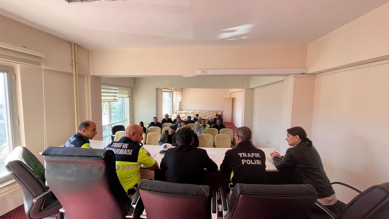 İlçe Milli Eğitim Müdürü Ünal Saraçoğlu başkanlığında düzenlenen toplantıya, jandarma, emniyet ve belediye başkanlığı temsilcilerinin yanı sıra okul müdürleri ve servis şoförleri katıldı.