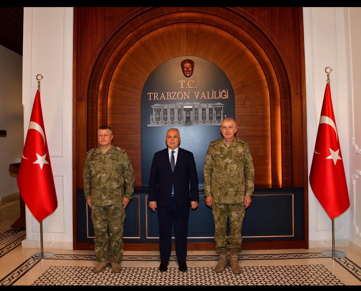 Erzurum 9. Kolordu Komutanı Tümgeneral Osman Akyıldız ve Trabzon 17. Komando Tugay Komutanı Tuğgeneral Burak Yılmaz Trabzon Valisi Aziz Yıldırım’a nezaket ziyaretinde bulundular.