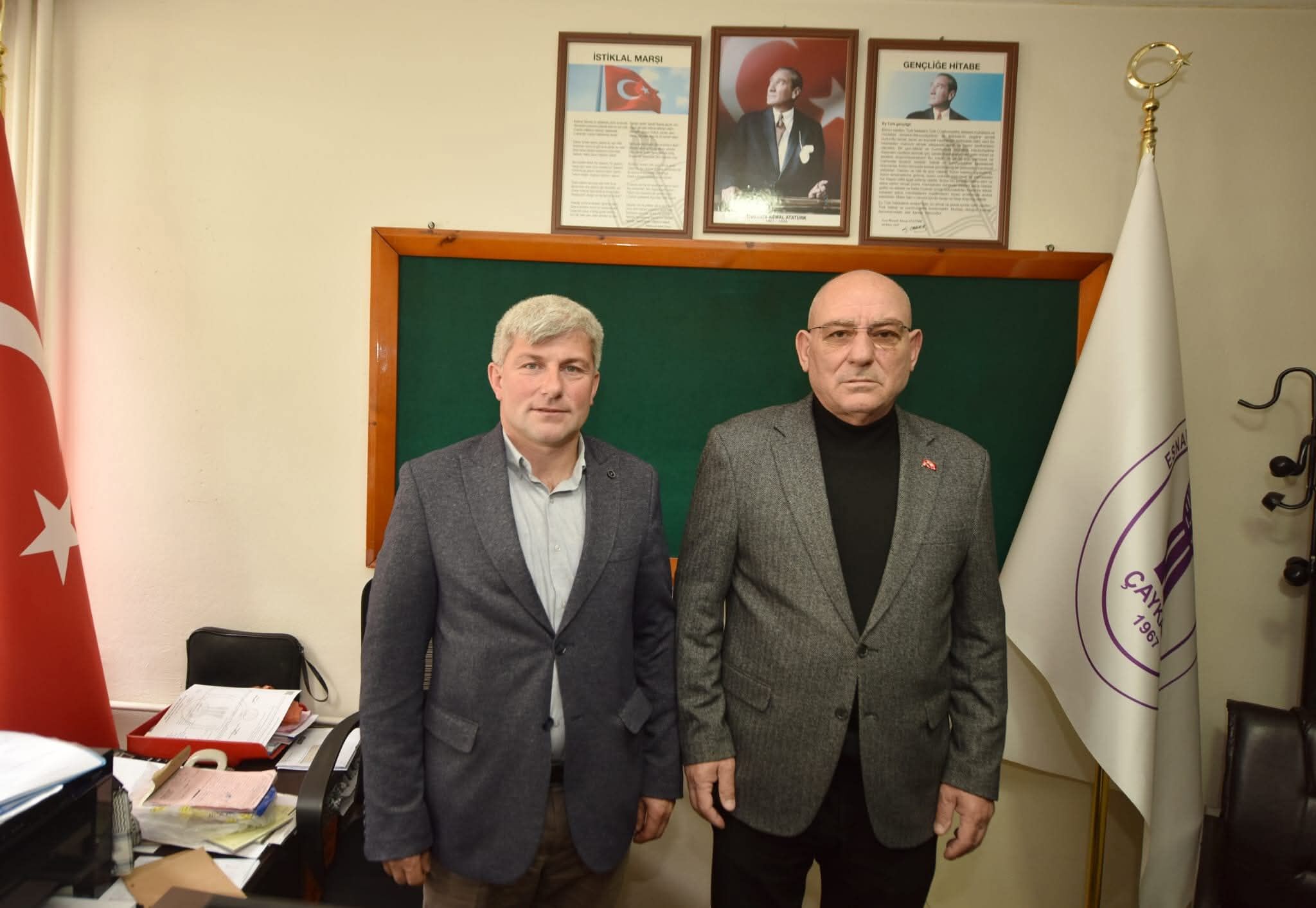 Trabzon Esnaf ve Sanatkarlar Odaları Birliği Başkanı Metin Kara ve Yönetim Kurulu Üyesi Ekrem Yılmaz, Çaykara Esnaf ve Sanatkarlar Odası'nı ziyaret ederek Başkan Murat Gönan ve yönetim kurulu üyeleri ile görüştü. Başkan Kara, göreve yeni seçilen Murat Gönan ve yönetim kuruluna çalışmalarında başarı dileklerini iletti. Ziyarette başta turizm olmak üzere yürütülen ve planlanan projeler ile talepler ve çözüm önerileri konusunda istişarede bulunuldu.