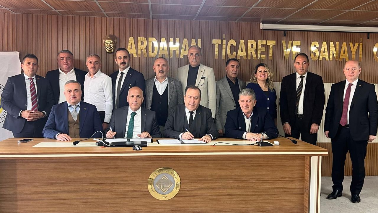 Artvin Ticaret Borsası Yönetim Kurulu Başkanı Osman Akyürek ile Ardahan Ticaret ve Sanayi Odası Yönetim Kurulu Başkanı Çetin Demirci tarafından imzalanan protokol töreninde, Artvin Ticaret Borsası Meclis Başkanı Ömer Hacıoğlu ile Ardahan Ticaret ve Sanayi Odası Meclis Başkanı Sönmez Görmüş de yer aldı.