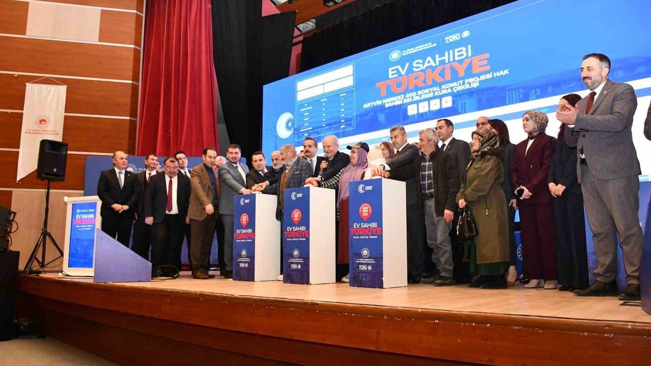 Yüzyılın Konut Projesi Hak Sahiplerini Belirleme Kura Çekiliş Töreni, Artvin Ahmet Hamdi Tanpınar Kültür Merkezi'nde yoğun katılımla gerçekleştirildi. Başvuru yapan vatandaşlar salonda yerini alırken, heyecan ve bekleyiş tüm salona hâkim oldu. Törene Çevre, Şehircilik ve İklim Değişikliği Bakan Yardımcısı Hasan Suver, Artvin Valisi Dr. Turan Ergün, Artvin Millet Vekil Faruk Çelik, Belediye Başkanı Bilgehan Erdem'in yanı sıra protokol üyeleri ve vatandaşlar katıldı. Saygı duruşu ve İstiklal Marşı'nın okunmasıyla başlayan törende protokol konuşmaları yapıldı.