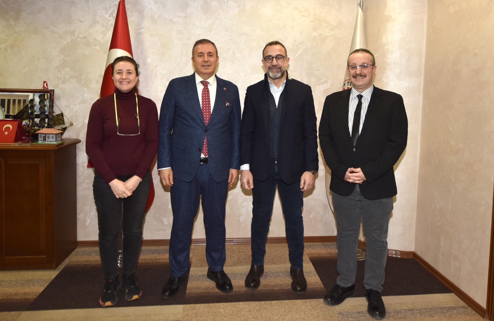 TTSO Başkanı Erkut Çelebi, Trabzon AB Bilgi Merkezi’nin yürüttüğü çalışmaların kent açısından önemli bir değer ürettiğini vurgulayarak, özellikle Avrupa Birliği desteğiyle hayata geçirilen kültürel ve sosyal etkinliklerin toplumsal karşılığının son derece güçlü olduğunu ifade etti. Kalandar Kutlamasını bu çalışmaların en çarpıcı örneklerinden biri olarak değerlendiren Çelebi, binlerce kişinin Trabzon Meydanı’nda bir araya geldiği bu etkinliğin hem kentin kültürel hafızasını görünür kıldığını hem de toplumsal birlikteliği güçlendirdiğini belirtti. Çelebi, “Kente dokunan, insanları bir araya getiren ve ortak hafızayı güçlendiren bu tür çalışmalar çok kıymetli. TTSO olarak, toplumsal fayda üreten ve Trabzon’un sosyal ve kültürel hayatına katkı sunan her türlü girişimin destekçisi olmaya devam edeceğiz. Bu, aynı zamanda Avrupa Birliği’nin yerelde yarattığı etkinin ve başarının somut bir göstergesidir” dedi. Başkan Çelebi, ziyaret kapsamında heyete Trabzon’un ekonomik yapısı, ticaret potansiyeli ve tarihsel gelişimi hakkında da kapsamlı bilgiler verdi. Trabzon’un tarih boyunca önemli bir ticaret ve liman kenti olduğuna dikkat çeken Çelebi, kentin bugün de Karadeniz Bölgesi’nin üretim, lojistik ve dış ticaret açısından stratejik merkezlerinden biri olma özelliğini sürdürdüğünü ifade etti.