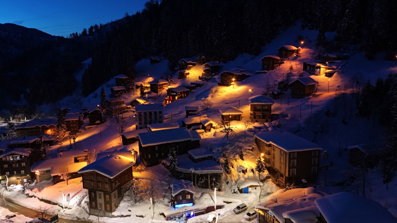 Çamlıhemşin ilçesindeki önemli turizm merkezlerinden Ayder Yaylası, kar yağışının ardından beyaz örtüyle kaplandı.
