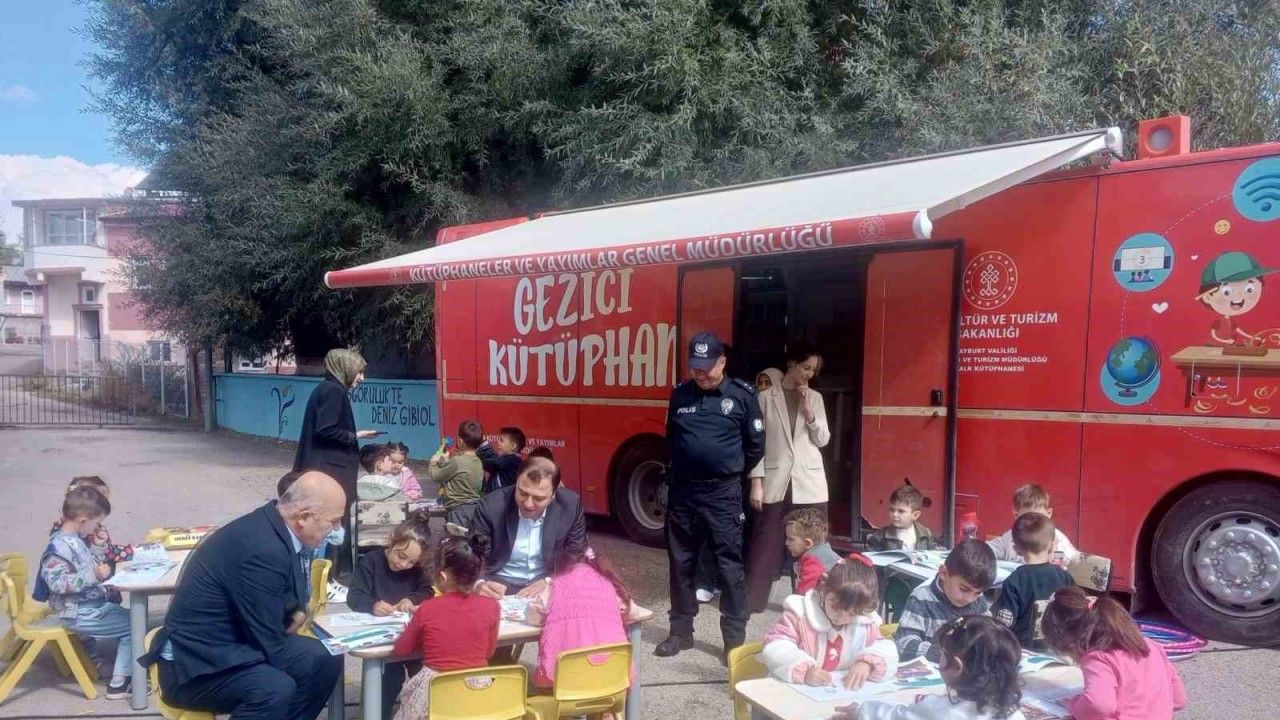 Gezici Kütüphane, Aydıntepe’deki anaokulu öğrencileriyle bir araya getirildi. Kaymakam Ertuğrul Bayram ve İlçe Milli Eğitim Müdürü Metin Bilgin etkinliğe katılarak, öğrencilere kitap okumanın önemini anlattı.