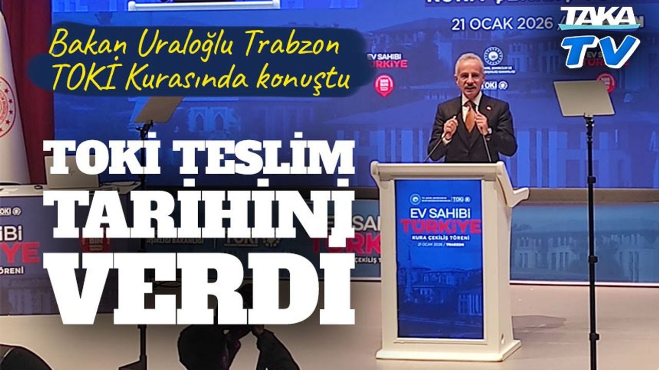 Ulaştırma ve Altyapı Bakanı Abdulkadir Uraloğlu, Trabzon’da düzenlenen TOKİ kura çekim töreninde önemli açıklamalarda bulundu. 500 Bin Sosyal Konut Projesi kapsamında Trabzon’daki 3 bin 734 konutun hak sahiplerinin belirlendiği törende konuşan Bakan Uraloğlu, projeye 46 bin 237 kişinin başvurduğunu açıkladı. Aynı zamanda konutların en geç 2027 sonunda teslim edileceğini belirtti. Bayrağa yapılan saldırıyı da sert dille kınayan Uraloğlu, “Devletimiz gereken cevabı verecektir” dedi.