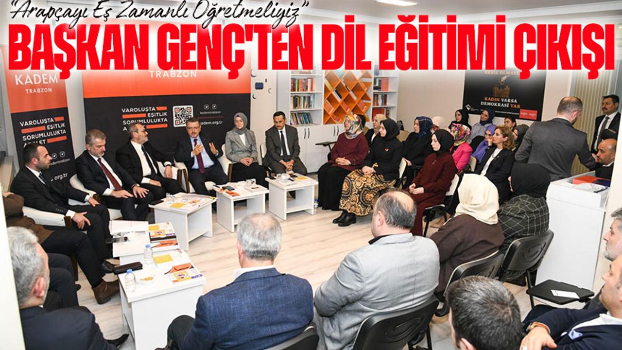Trabzon Büyükşehir Belediye Başkanı Ahmet Metin Genç, Kadın ve Demokrasi Derneği (KADEM) İl Temsilciliği’nde düzenlenen Eğitime Destek Platformu Aylık Olağan Toplantısı’nda eğitim ve değerler üzerine dikkat çeken değerlendirmelerde bulundu. Önceki dönem Kültür ve Turizm Bakanı Mahir Ünal’ın da katıldığı toplantıda konuşan Genç, günümüz dünyasında yaşanan sorunların temelinde eğitimsizlikten ziyade değer eksikliği olduğunu ifade etti. Dil eğitimi konusuna özel bir vurgu yapan Genç, hafızlık eğitimiyle birlikte Arapçanın da öğretilmesi gerektiğini söyledi.