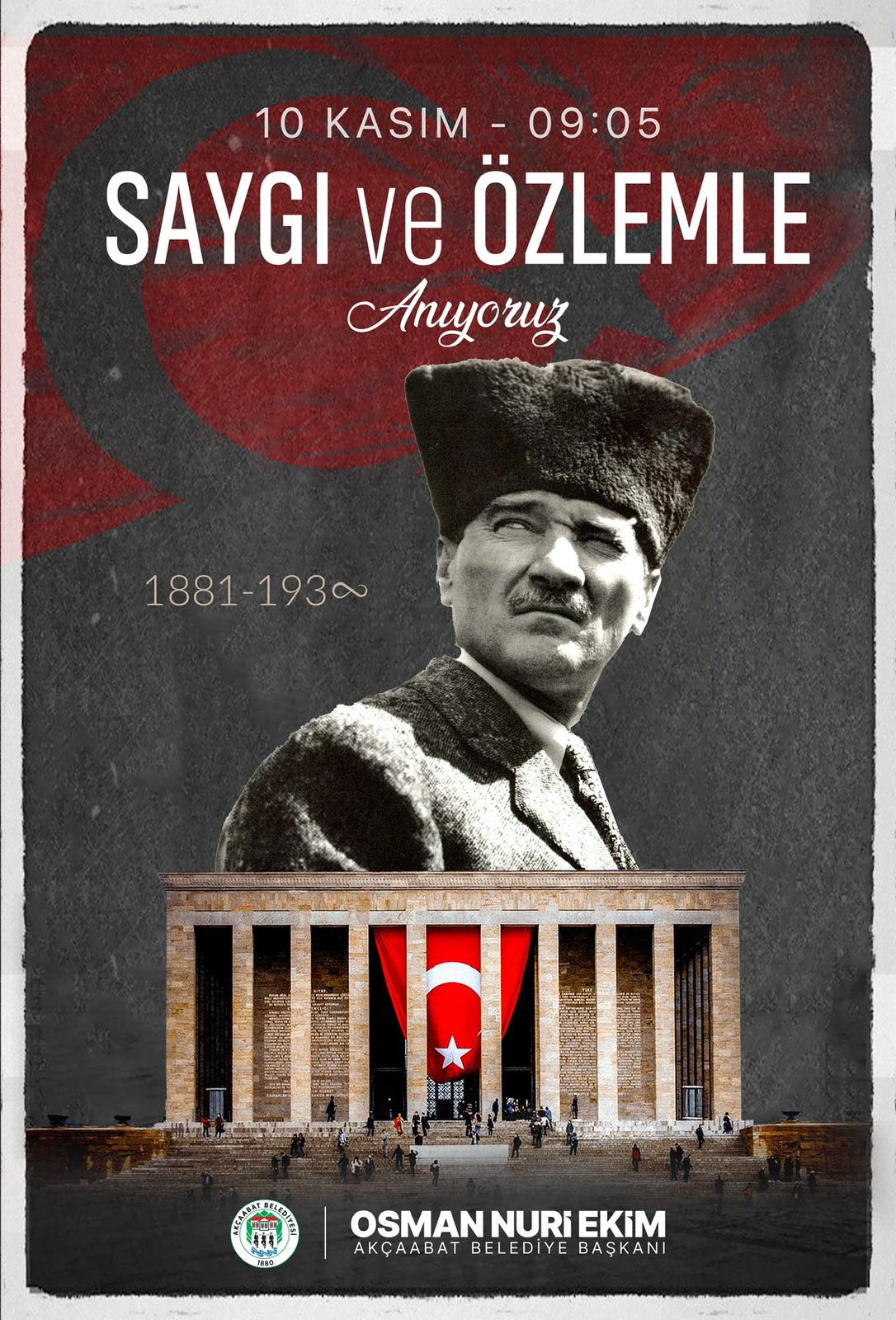 Akçaabat Belediye Başkanı Osman Nuri Ekim, Gazi Mustafa Kemal Atatürk’ün ebediyete irtihalinin yıl dönümü dolayısıyla bir mesaj yayımladı.