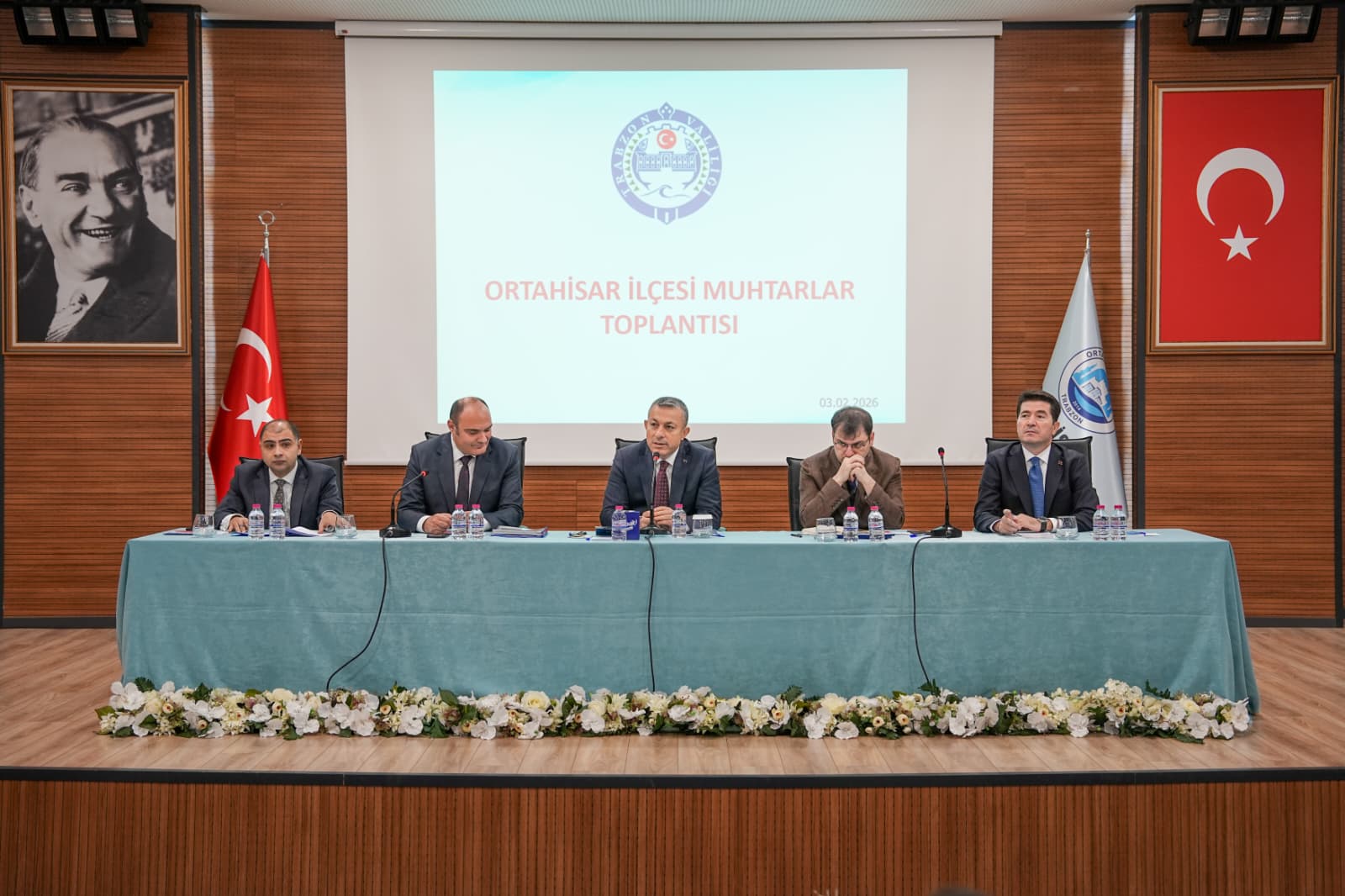 Ortahisar Belediyesi ev sahipliğinde düzenlenen “Ortahisar İlçesi Muhtarlar Toplantısı”, Orhan Karakullukçu Salonu’nda geniş katılımla gerçekleşti. Toplantıya Trabzon Valisi Tahir Şahin’in yanı sıra il ve ilçe yöneticileri, emniyet ve jandarma temsilcileri, belediye yöneticileri, muhtar dernekleri ve Ortahisar’da görev yapan mahalle muhtarları katıldı. Ortahisar Belediye Başkanı Ahmet Kaya, toplantıda yaptığı konuşmada muhtarlarla kurdukları güçlü iş birliğine dikkat çekerek, “Biz bir aileyiz” vurgusunda bulundu. Kaya, “Hangi muhtarımız bizden ne talep ettiyse elimizden gelen gayreti gösterdik, göstermeye de devam edeceğiz” ifadelerini kullandı.