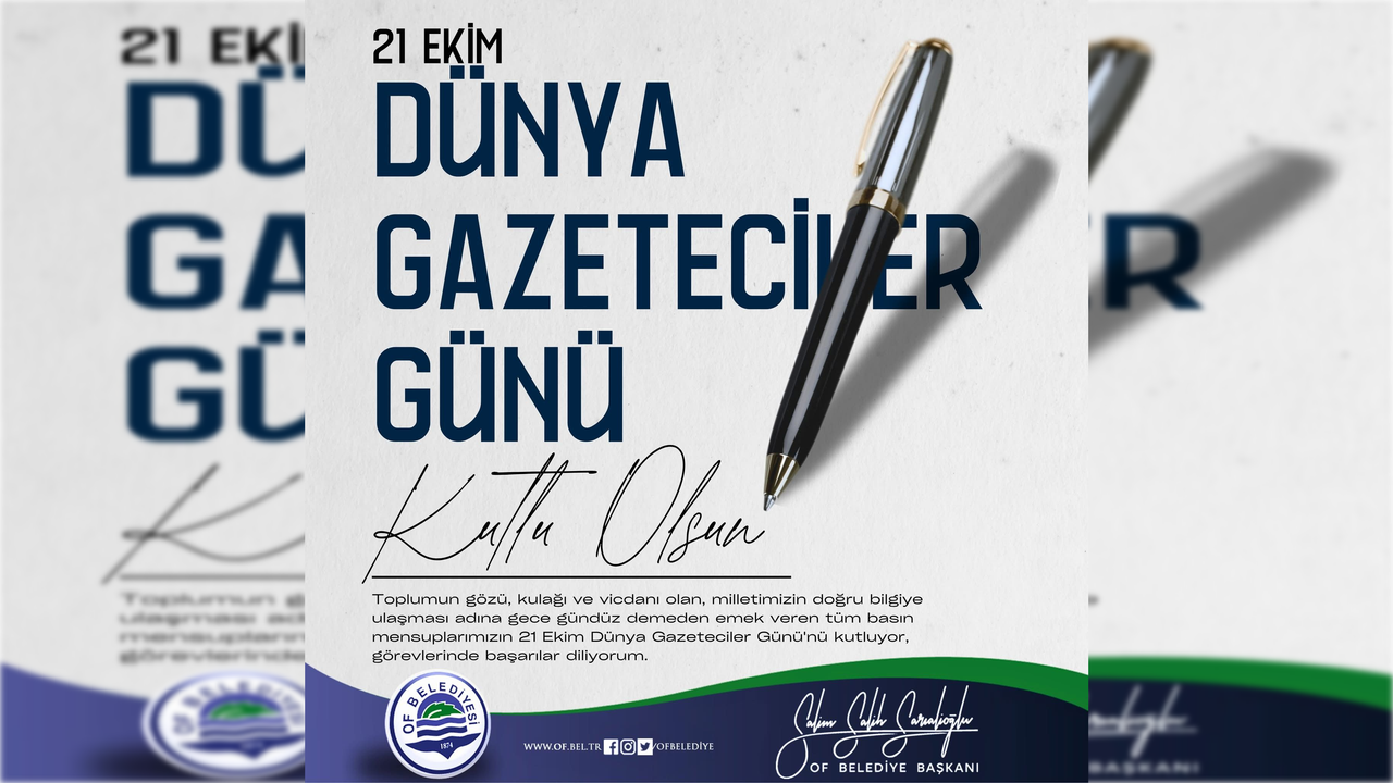Of Belediye Başkanı Salim Salih Sarıalioğlu, 21 Ekim Dünya Gazeteciler Günü dolayısıyla yayımladığı mesajında, basının demokrasinin temel taşlarından biri olduğuna vurgu yaparak, gazetecilik mesleğinin önemine dikkat çekti.