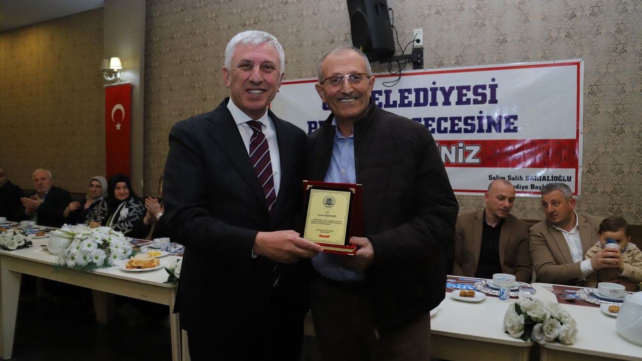 Gecede emekliye ayrılan belediye personelleri de unutulmadı. Başkan Sarıalioğlu, uzun yıllar belediyeye hizmet eden çalışanlara teşekkür ederek plaket takdim etti. Emekli personele sağlık, mutluluk ve huzur dolu bir yaşam temennisinde bulundu.