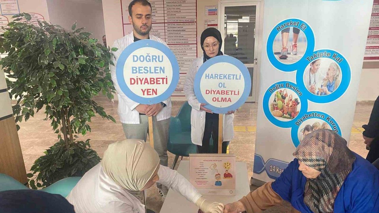 Hastane bünyesinde görevli diyabet eğitim hemşiresi tarafından vatandaşlara ve diyabet hastalarına parmaktan kan şekeri ölçümü yapılarak, halk arasında şeker olarak bilinen diyabet hastalığı hakkında bilgiler verildi. Diyetisyenler ise diyabette beslenme ve sağlıklı beslenme üzerine önerilerde bulundu. Ayrıca stantta, diyabetli hastalara şeker hastası kimlik kartları dağıtılarak, ara öğün ikramı yapıldı.