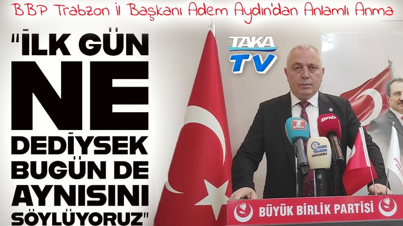 Büyük Birlik Partisi (BBP) Trabzon İl Başkanı Adem Aydın, Şehit Lider Muhsin Yazıcıoğlu’nu doğum gününde anma programı öncesinde kapsamlı bir basın açıklaması yaptı. Aydın, hem BBP camiasının önde gelen isimlerinden Ahmet Polat’ın vefatıyla ilgili taziye mesajını iletti hem de Türkiye’nin karşı karşıya olduğu güvenlik, adalet, ekonomi ve ahlaki erozyon gibi kritik başlıklara değinerek dikkat çeken açıklamalarda bulundu.