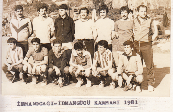 Bu fotoğrafta antrenörler Hacı Kakışım, Fethi Türkoğlu ve meslektaşım da olan rahmetli Turgut Özdemir’in de iştiraki ile 1981’de bir araya gelmiş, benim de içinde yer aldığım İdmangücü-İdmanocağı Karması’dır.