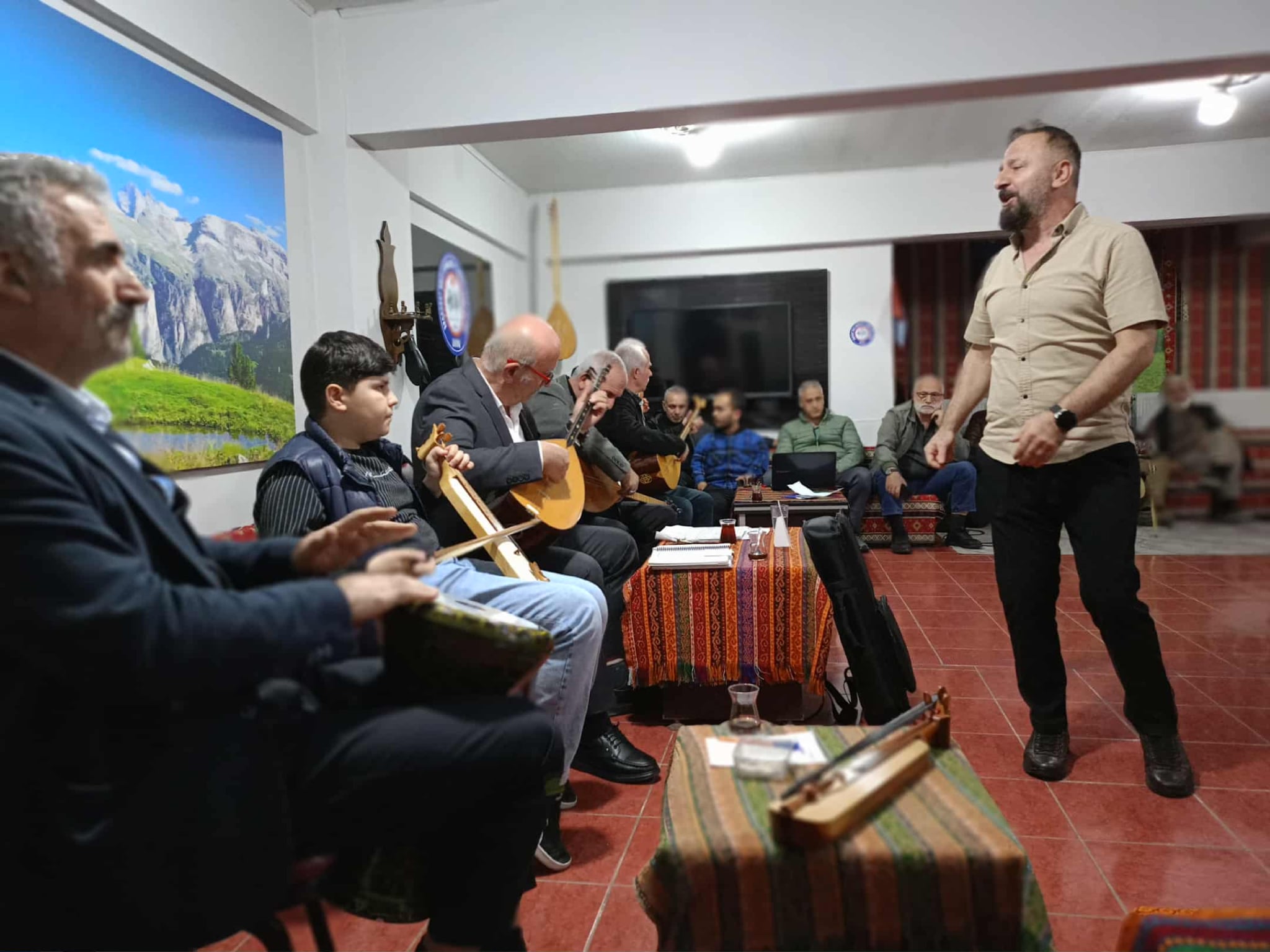 İşte o akşamlardan biriydi… Akçaabat’ın kalbinde, dostluğun, müziğin ve memleket sevdasının aynı masada buluştuğu bir Cuma gecesi. Süleyman Şal ve yol arkadaşlarının yürek emeğiyle kurulan Akçaabat Halk Oyunları Müzik ve Spor Derneği (AHOM), sadece bir dernek değil; adeta bir sevda durağı olmuş. Her Cuma akşamı, sazın, sözün ve insanlığın en samimi hâli burada can buluyor. Salona adım attığınız anda sizi karşılayan sıcaklık, bir dernek etkinliğinden çok, sanki köydeki eski bir düğünün ilk saatlerini hatırlatıyor. Kimi bağlamasını akord ederken, kimi çayını karıştırıyor. Bir köşede kemençenin sesi ısınıyor, diğer yanda darbuka usul tutuyor. Derken, ışıklar yumuşuyor ve sahnede o sihirli an başlıyor…