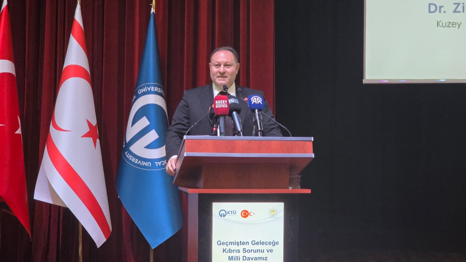 Etkinliğin açılışında konuşan KTÜ Rektörü Prof. Dr. Hamdullah Çuvalcı, Kıbrıs meselesinin tarihsel ve stratejik boyutuna dikkat çekerek şunları söyledi: “Son derece önemli bir konuyu konuşmak üzere bir araya gelmiş bulunuyoruz. Sayın devlet adamını üniversitemizde ağırlamaktan büyük onur duyuyoruz. Öztürkler'in bilgi birikimine hepimiz aşinayız. Bu programın geleceğe ışık tutan bütüncül bir düşünce perspektifi olacağına inanıyoruz. Kıbrıs Türkleri milli kimliklerinden ve özgürlük mücadelelerinden hiçbir zaman vazgeçmemiştir. Baskı ve katliamlarla Türk milletini yok etmeye çalışmışlardır. Ancak Kıbrıs’taki Türkler tek yürek halinde durmuş ve kendi devletini kurmayı başarmıştır. Bugün KKTC'nin varlığı bu milli iradenin bir sonucudur.” Çuvalcı, Kıbrıs Türk halkının haklı davasını savunmanın sadece siyasetçilerin değil, akademisyenlerin de sorumluluğunda olduğunu belirterek programın tarih ile gelecek arasında güçlü bağlar kurulmasına katkı sağlayacağını ifade etti.