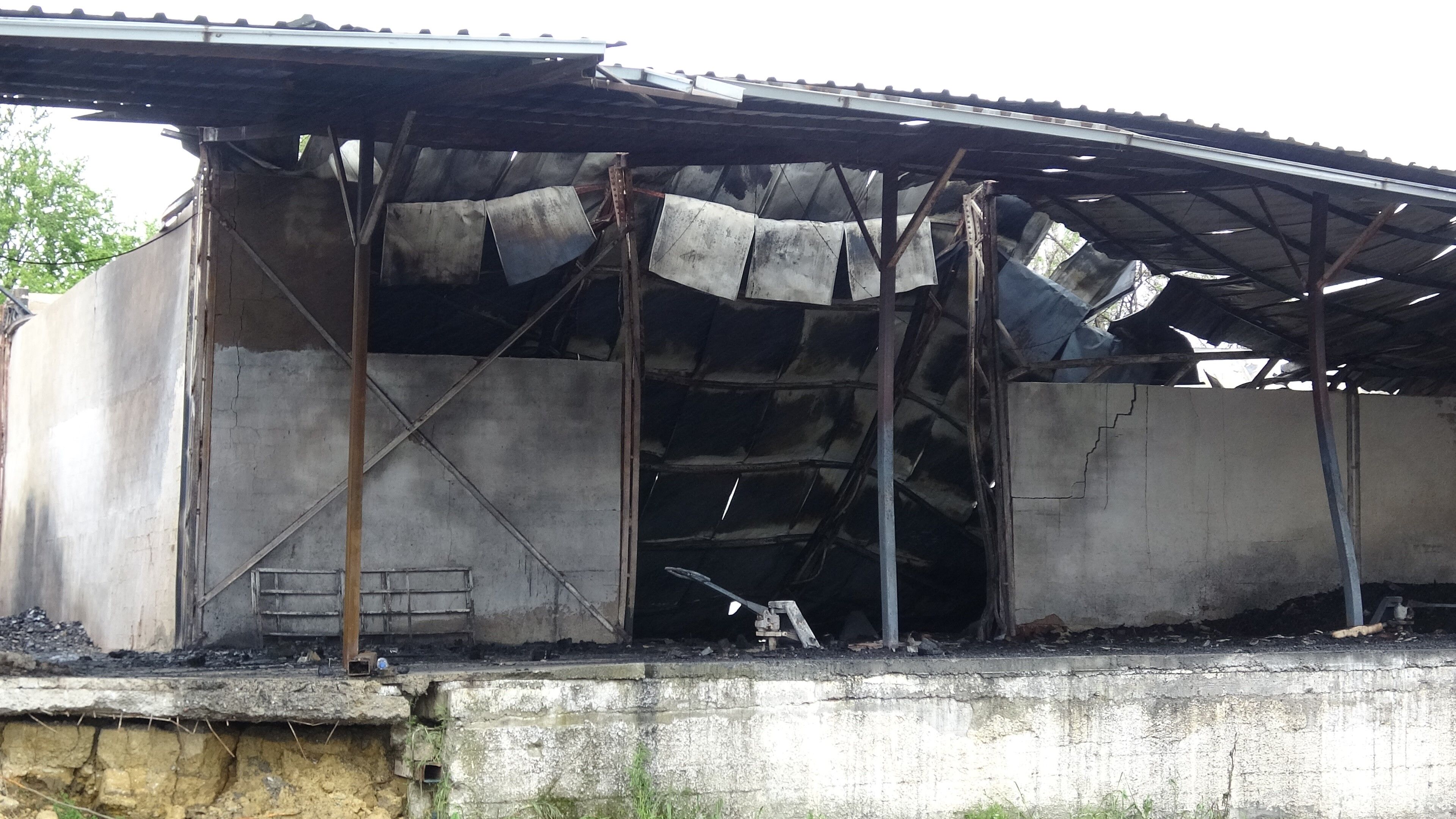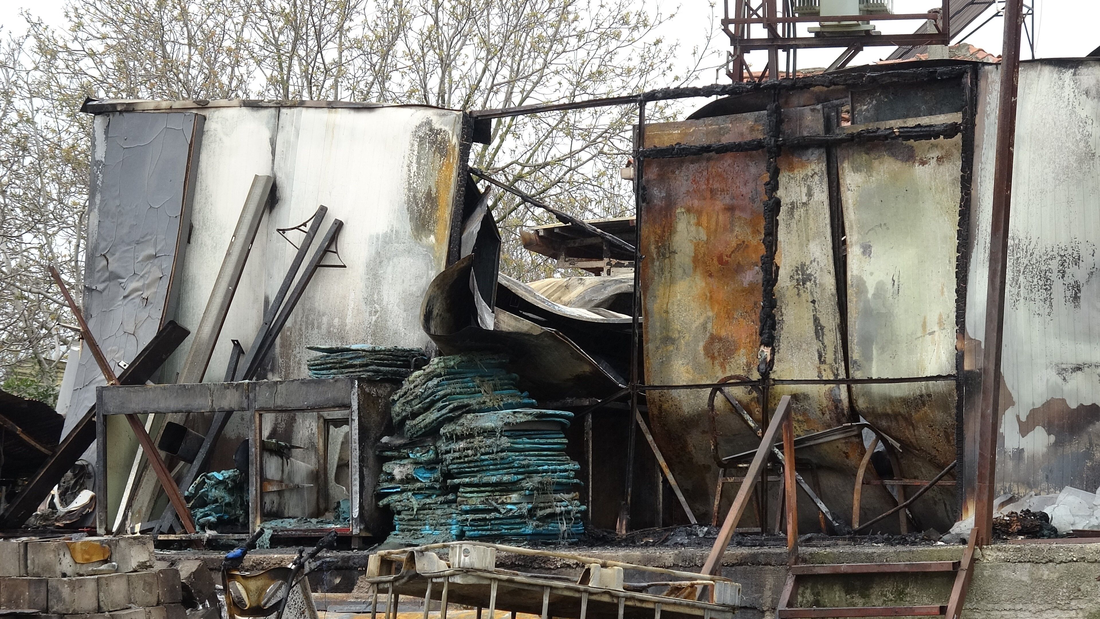 Günün ilk ışıklarıyla birlikte yangının verdiği zarar net şekilde görüldü. Depo içerisindeki tüm malzemeler, çatısı ve depoya bağlı yaşam alanı tamamen yanarak kullanılamaz hale geldi.