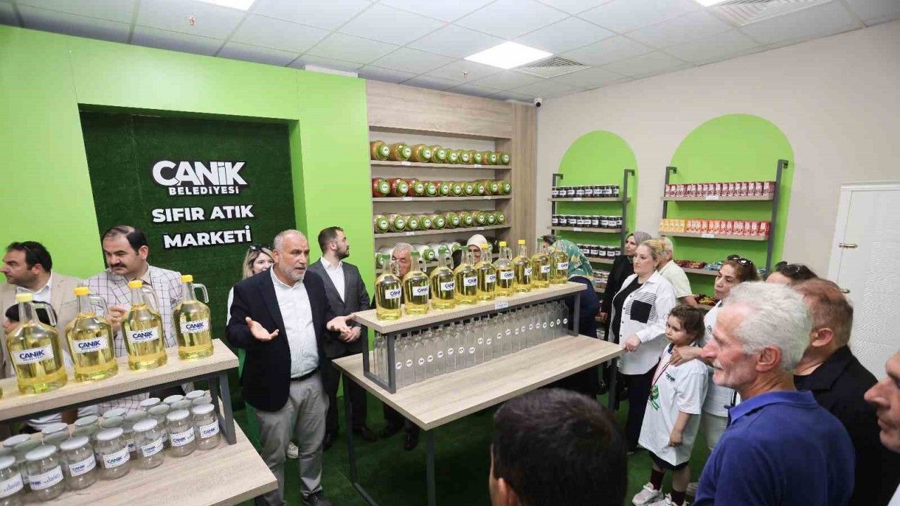 Canik Sıfır Atık Marketi’nde temel gıda, temizlik ve glütensiz gıda reyonlarının yer aldığını belirten Başkan İbrahim Sandıkçı, "Canik’imizde hayata geçirdiğimiz Canik Sıfır Atık Marketimizle aile ekonomisine katkılar sunuyor, sıfır atık bilincinin daha yaygın bir hale gelmesine katkılar sunuyoruz. Cumhurbaşkanımız Sayın Recep Tayyip Erdoğan’ın değerli eşi Emine Erdoğan Hanımefendi’nin himayelerinde sürdürülen sıfır atık projeleri, tüm dünya ülkelerinde yaşanılabilir gelecek konusunda önemli bir farkındalık oluşturdu. İlçemizde hizmete sunduğumuz Canik Sıfır Atık Marketimiz bu farkındalığın artmasına vesile olurken, ayrıca ailelerimize, evlerinde ayrı bir şekilde sınıflandırdığı geri dönüştürülebilir atıklar karşılığında alışveriş yapabilme imkânı sunuyor. Cam, metal, plastik ve alüminyum atıklar üzerinde kilo bazlı puanlama sistemiyle gerçekleştirilen alışveriş işlemleriyle ailelerimiz, temel gıda, temizlik ve glütensiz gıda reyonlarımızdan dilediği ürünleri alabiliyor" diye konuştu.