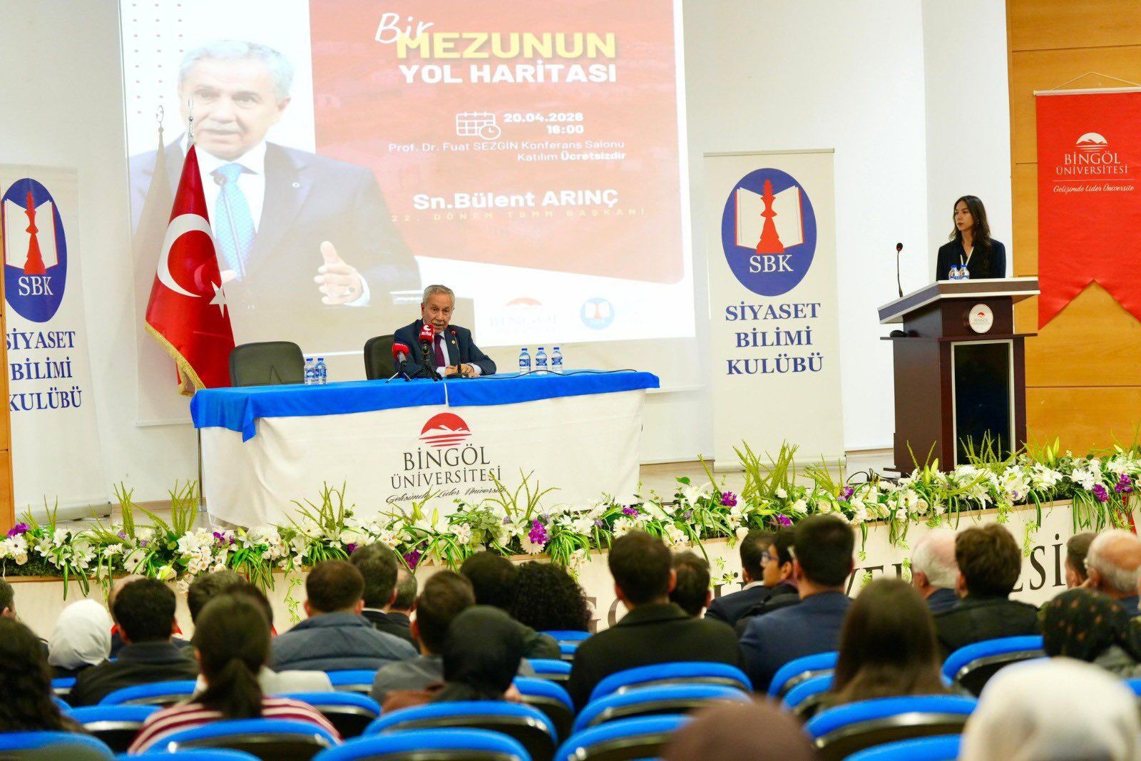 Dönem TBMM Başkanı Bülent Arınç, Bingöl Üniversitesi Siyaset Bilimi Kulübü tarafından düzenlenen “Bir Mezunun Yol Haritası” başlıklı konferansta öğrencilerle bir araya geldi. Yoğun katılımla gerçekleşen programda Arınç, hem siyasi kariyerine hem de meslek hayatındaki dönüm noktalarına dair deneyimlerini paylaştı. Öğrencilerin ilgiyle takip ettiği konferansta, özellikle gençlerin kariyer planlaması ve kamu hayatına bakışı üzerine dikkat çekici değerlendirmeler yapıldı.