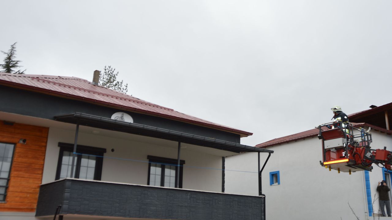 Olay yerine giden itfaiye ekipleri, kediyi bulunduğu yerden kurtarmak için çalışma başlattı. Merdiven uzatarak çatıya ulaşan itfaiye ekipleri, kediyi bulunduğu yerden kurtardı.