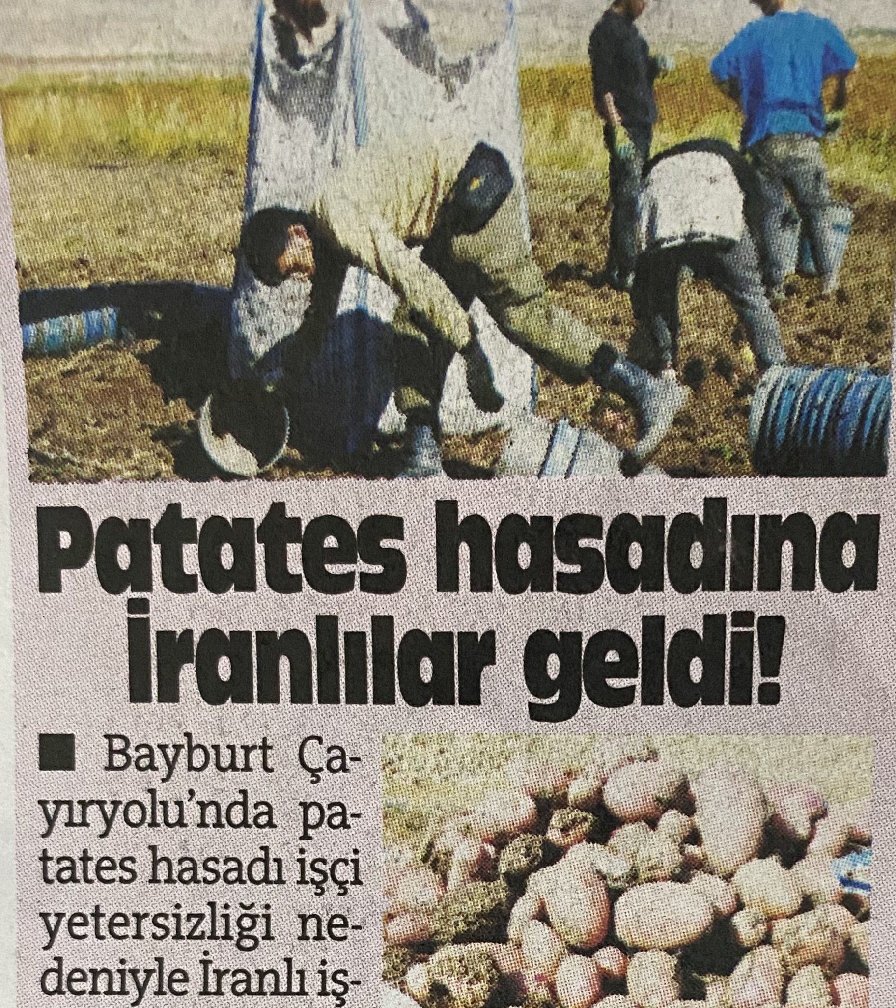 İşte gazetedeki manşet: “Patates hasadına İranlılar geldi!”