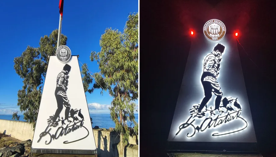 Akçaabat Limanı’nın simgelerinden biri olan Atatürk portresi, yenilenerek modern ve ışıklı bir görünüme kavuşturuldu. Zamanla deforme olan ve kısım kısım kopmaları nedeniyle Atatürk’e benzerliğini yitirdiği ifade edilen eski portre, Akçaabat Belediyesi tarafından yapılan çalışma ile tamamen kaldırılarak yerine çağdaş bir tasarım yerleştirildi.