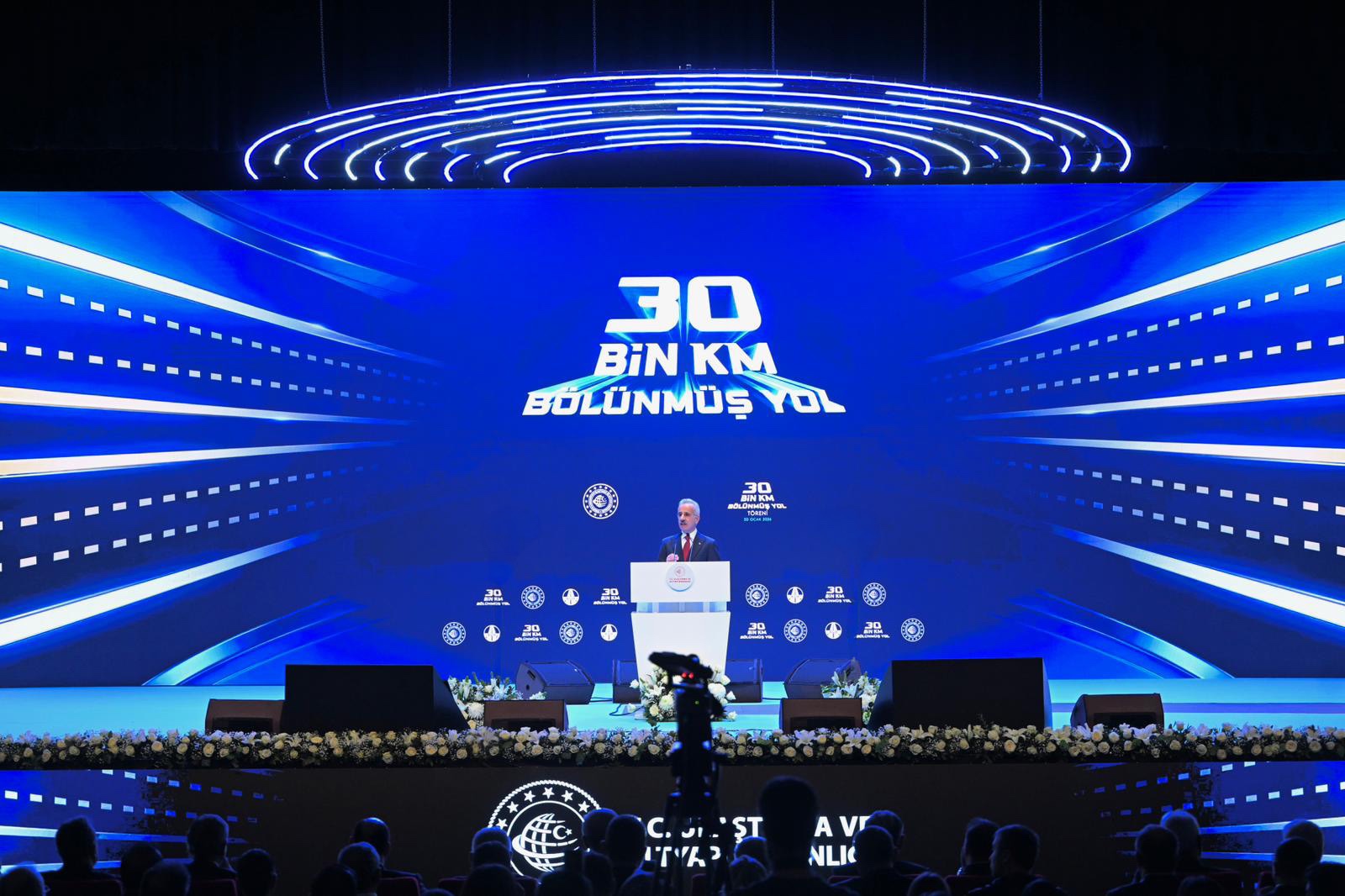 “30 Bin Kilometre Bölünmüş Yol Töreni” Cumhurbaşkanı Recep Tayyip Erdoğan’ın teşrifleri, Ulaştırma ve Altyapı Bakanı Abdulkadir Uraloğlu’nun katılımıyla gerçekleştirildi. Törende konuşan Cumhurbaşkanı Erdoğan, yapımı tamamlanan bölünmüş yolların 30 bininci kilometresini hizmete almak üzere bir arada olmaktan duyduğu memnuniyeti dile getirdi. Cumhurbaşkanı Erdoğan bu yolların yapımında fedakarca çalışan, serdiği asfaltı alın teriyle harmanlayan tüm emekçilere teşekkür ederek, “Yol yapım projelerinde görev alan tüm kardeşlerime şükranlarımı sunuyor, Sayın Bakanlarımızı ve Genel Müdürlerimizi, Ulaştırma Bakanlığımızın ve Karayolları Genel Müdürlüğümüzün her bir mensubunu, geçmiş dönemde teşviki mesai yaptığımız Ulaştırma Bakanlarımızı tam 30 bin 49 km uzunluğa erişen bu bölünmüş yollar için tebrik ediyorum. Bölünmüş yol projesini birlikte başlattığımız partimizin kurucularından Eski Bayındırlık ve İskan Bakanımız Bitlis Milletvekilimiz merhum Zeki Ergezen’i de bu vesileyle bir kez daha rahmetle yad ediyorum.” dedi.
