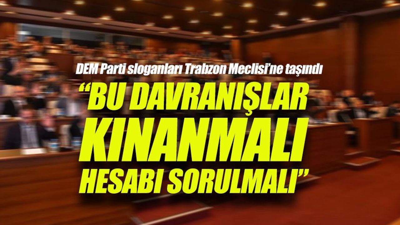 Trabzon Büyükşehir Belediye Meclisi’nin son oturumunda, TBMM’de DEM Parti grup toplantısında atılan sloganlar gündeme taşındı. CHP Grup Başkanvekili Cüneyit Zorlu ile Yeniden Refah’lı Mustafa Küçükibrahimoğlu, mecliste yaptıkları gündem dışı konuşmalarda olayı kınadı; ilçelerden gelen bazı AK Partili üyeler ve belediye başkanları da görüş bildirdi. Tartışma, mecliste sert ifadelerle sürerken, bazı üyeler konunun resmî bir kınama metniyle duyurulmasını talep etti. Gündem, hem siyasi hem de hukuki sorumluluk ve toplumsal hassasiyet ekseninde tartışıldı.
