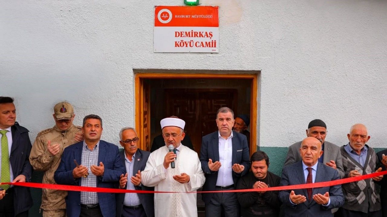 Bayburt merkeze bağlı Demirkaş köyündeki köy camisi, tamamlanan tadilat çalışmalarının ardından düzenlenen törenle ibadete açıldı.