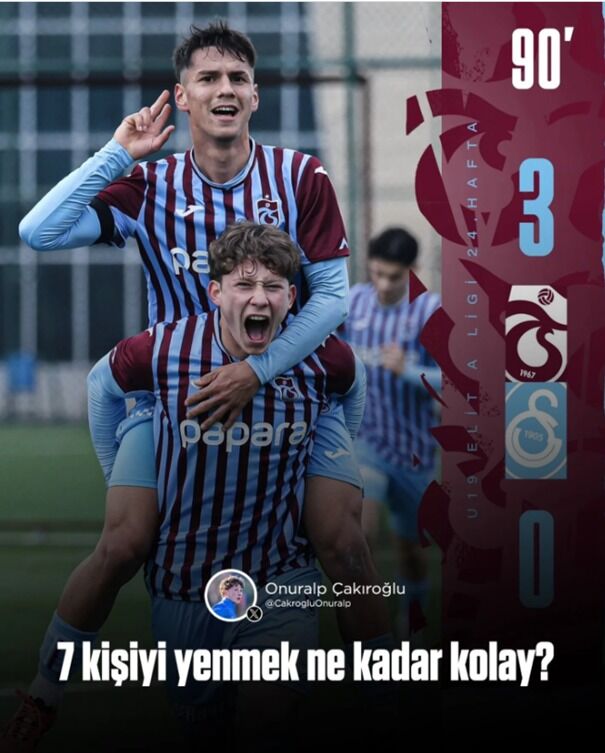 Trabzonspor-Galatasaray maçında Abdülkerim Bardakçı’nın yenilgiyi hazmedemeyerek dövmeye kalkıştığı ve hakaret ettiği Trabzonspor’un genç oyuncusu Onuralp Çakıroğlu’nun geçmişinde Galatasaray’a göndermelerle ilgili olarak ilginç detaylar var. Abdülkerim Bardakçı PFDK sevklerinde dün yapılan açıklama ile skandal bir şekilde disipline sevk edilmezken olayı mağduru Onuralp sevklilerin arasında kaldı.