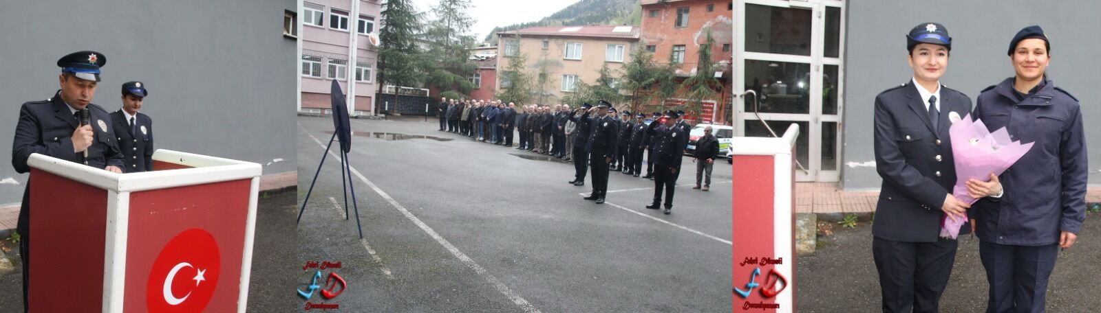 Trabzon’un Dernekpazarı ilçesinde 10 Nisan Polis Haftası kapsamında program düzenlendi. Türkiye Cumhuriyeti’nin huzur ve güvenliği için görev yapan Emniyet Teşkilatı’nın 181. kuruluş yılı dolayısıyla gerçekleştirilen törende, polislerin toplumun huzur ve asayişinin sağlanmasındaki önemine dikkat çekildi.