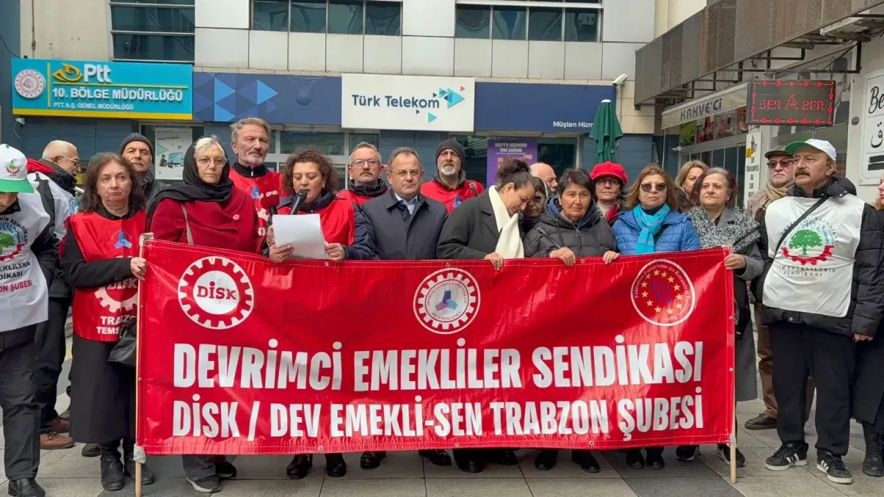 Trabzon’da bir araya gelen DİSK Emekli-Sen üyeleri, emeklilere verilen bayram ikramiyesine tepki göstermek amacıyla basın açıklaması düzenledi. Sendika üyeleri, emeklilerin ekonomik koşullarının giderek ağırlaştığını belirterek yetkililere çağrıda bulundu. Basın açıklamasında emeklilerin temel ihtiyaçlarını karşılamakta zorlandığı ve artan fiyatlar nedeniyle geçim sıkıntısının büyüdüğü dile getirildi.