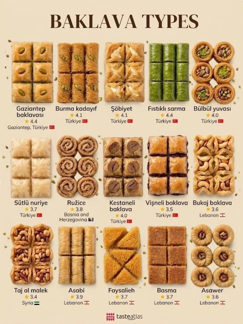 TasteAtlas’ın paylaştığı listede Gaziantep baklavası ve fıstıklı sarma en yüksek puanı alan tatlılar arasında yer aldı. Şöbiyet, burma kadayıf ve kestaneli baklava gibi çeşitler de üst sıralarda kendine yer buldu.