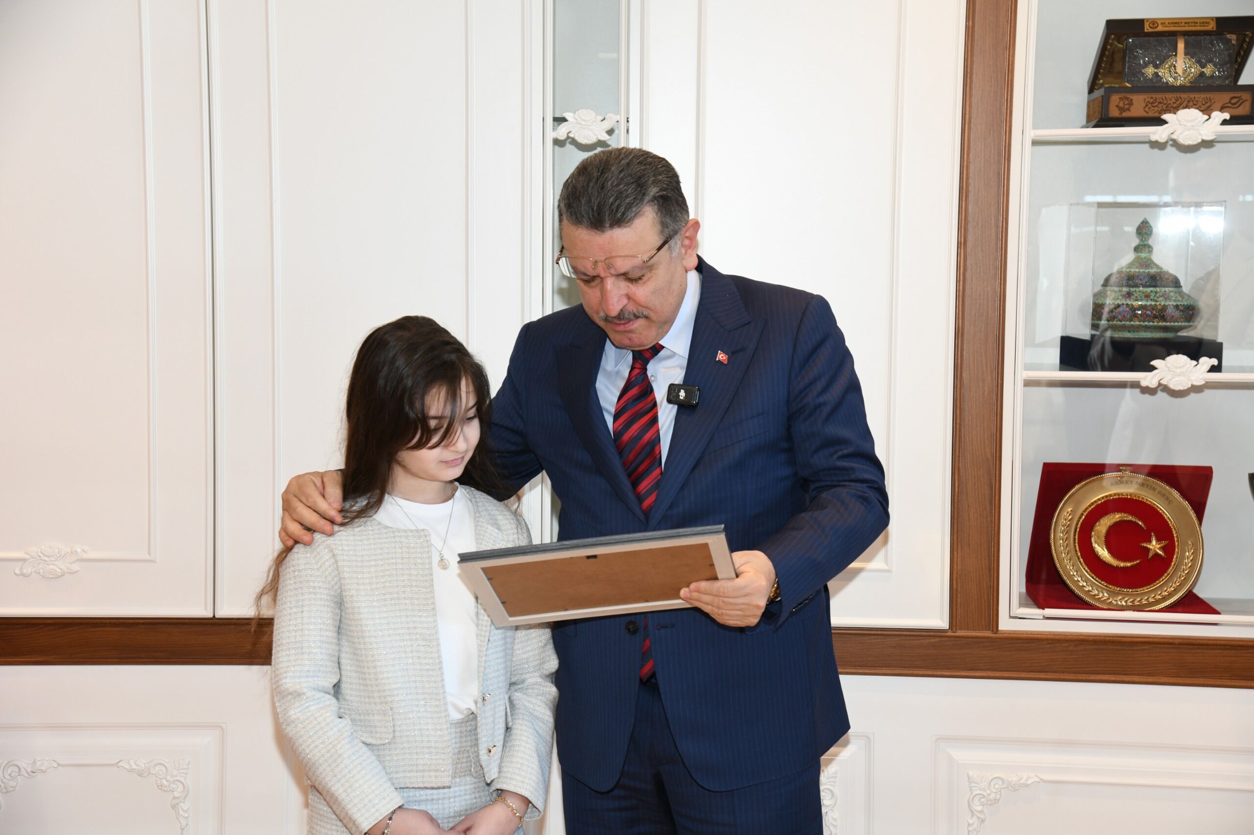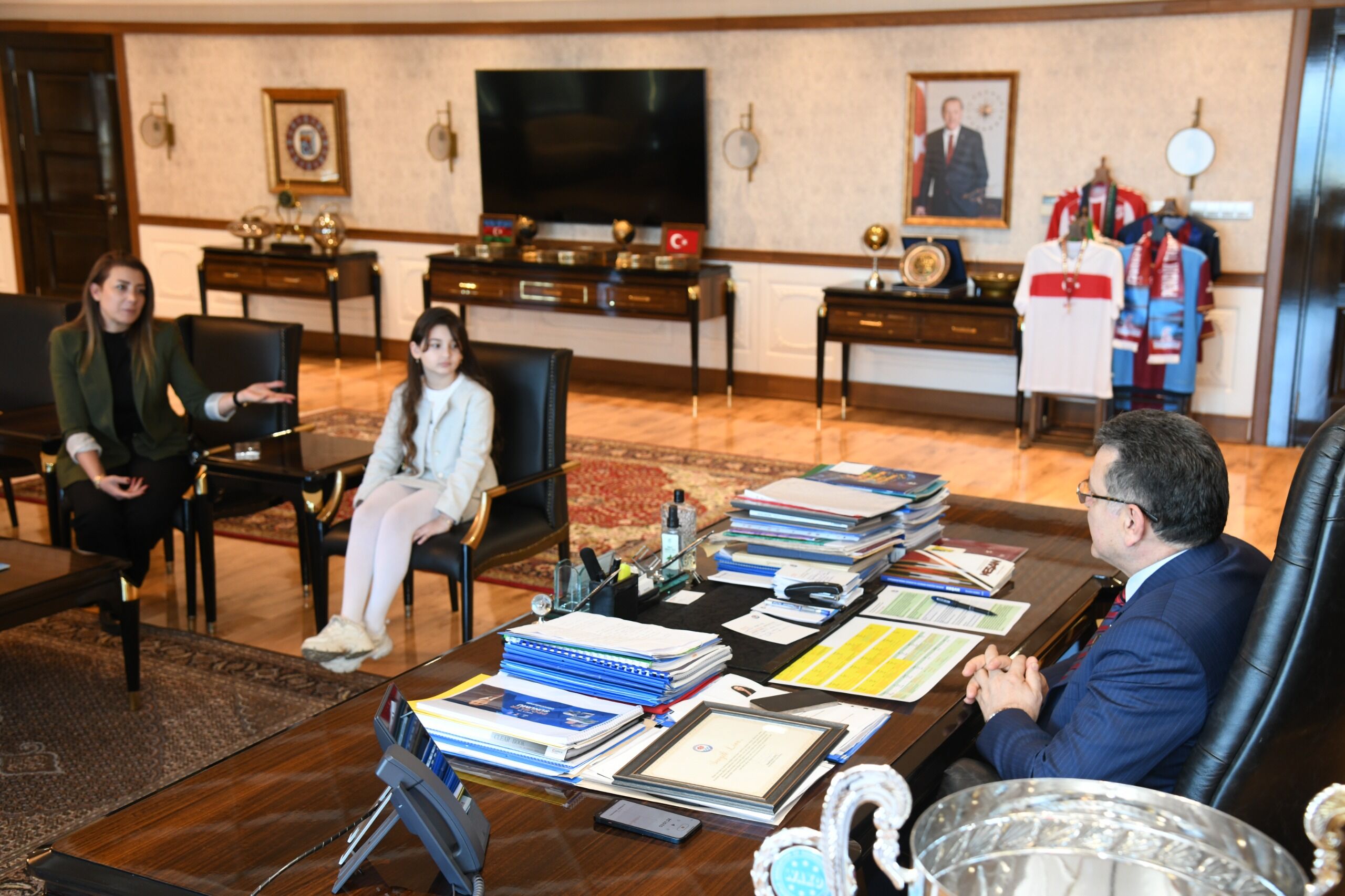 Trabzon Büyükşehir Belediye Başkanı Ahmet Metin Genç, STEM Matematik Olimpiyatları’nda dünya birinciliği elde eden 4. sınıf öğrencisi Lina Saka ve ailesini makamında kabul etti. Ziyarette Lina Saka’nın elde ettiği uluslararası başarı ve gelecekteki hedefleri üzerine sohbet edildi.