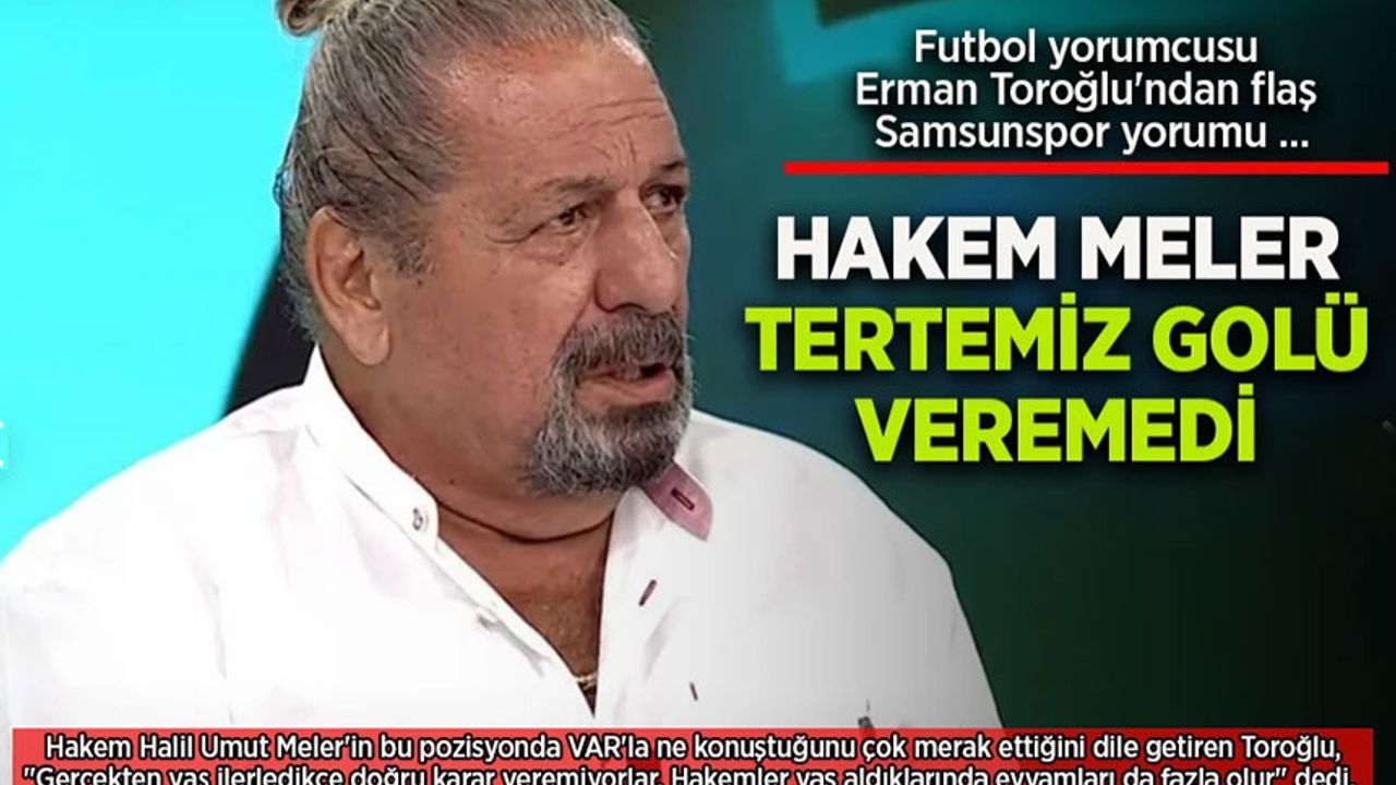 Futbol yorumcusu eski hakem Erman Toroğlu, EKOL TV'de Samsunspor'un geçerli sayılmayan golüyle ilgili açıklamalarda bulundu. Her şeyden önce tertemiz golün hakem Halil Umut Meler tarafından art niyetli olarak verilmediğini söyleyen Toroğlu, "Topa vurulduğu an kalecinin arkasında ki oyuncu Holse'nin oyuna müdahalesi, kendine avantaj sağlama durumu, kalecinin görüş alanını engelleme gibi bir durumu kesinlikle yok" dedi.