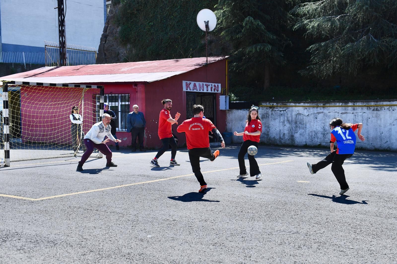 Sosyal belediyecilik anlayışıyla eğitimin ve sporun her zaman destekçisi olan Ortahisar Belediyesi, kısıtlı imkanlarla büyük başarılara imza atan Ata Ortaokulu Küçük Kızlar Futsal Takımı’na malzeme desteği sağladı. Gençlik ve Spor Hizmetleri Müdürlüğü tarafından düzenlenen etkinlikte, Müdür Mustafa Uzunoğlu ve belediye personelinden oluşan takım ile Ata Ortaokulu takımı arasında bir gösteri maçı gerçekleştirildi. Ortahisar Belediye Başkan Yardımcısı Cüneyit Zorlu, Okul Müdürü Ömer Yazıcı birlikte maçı takip etti.