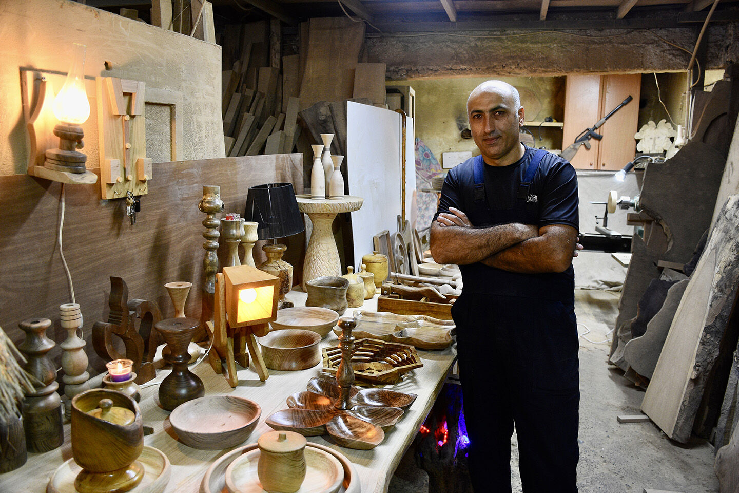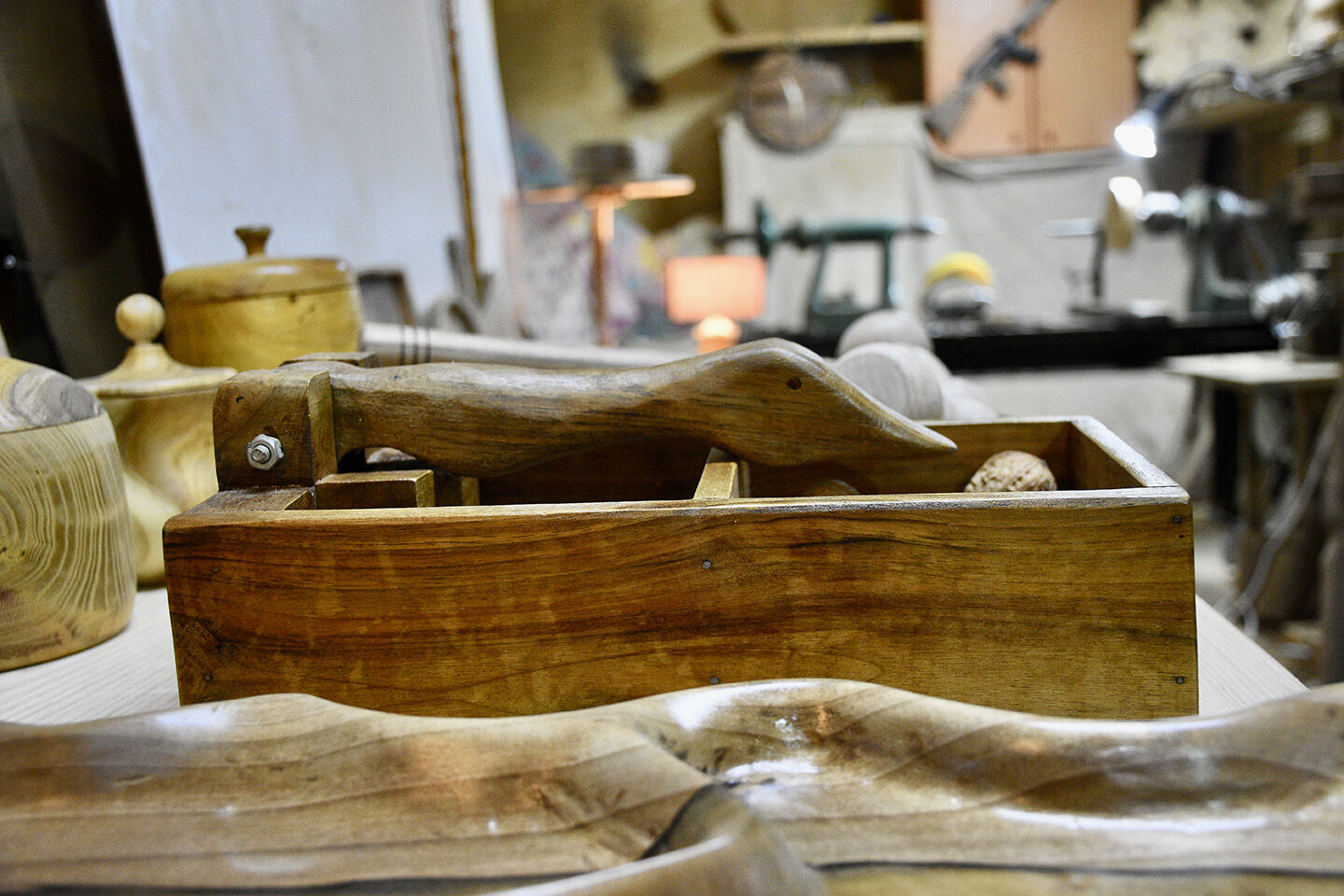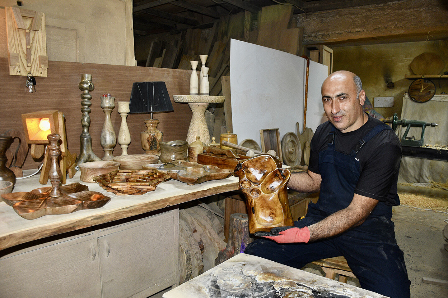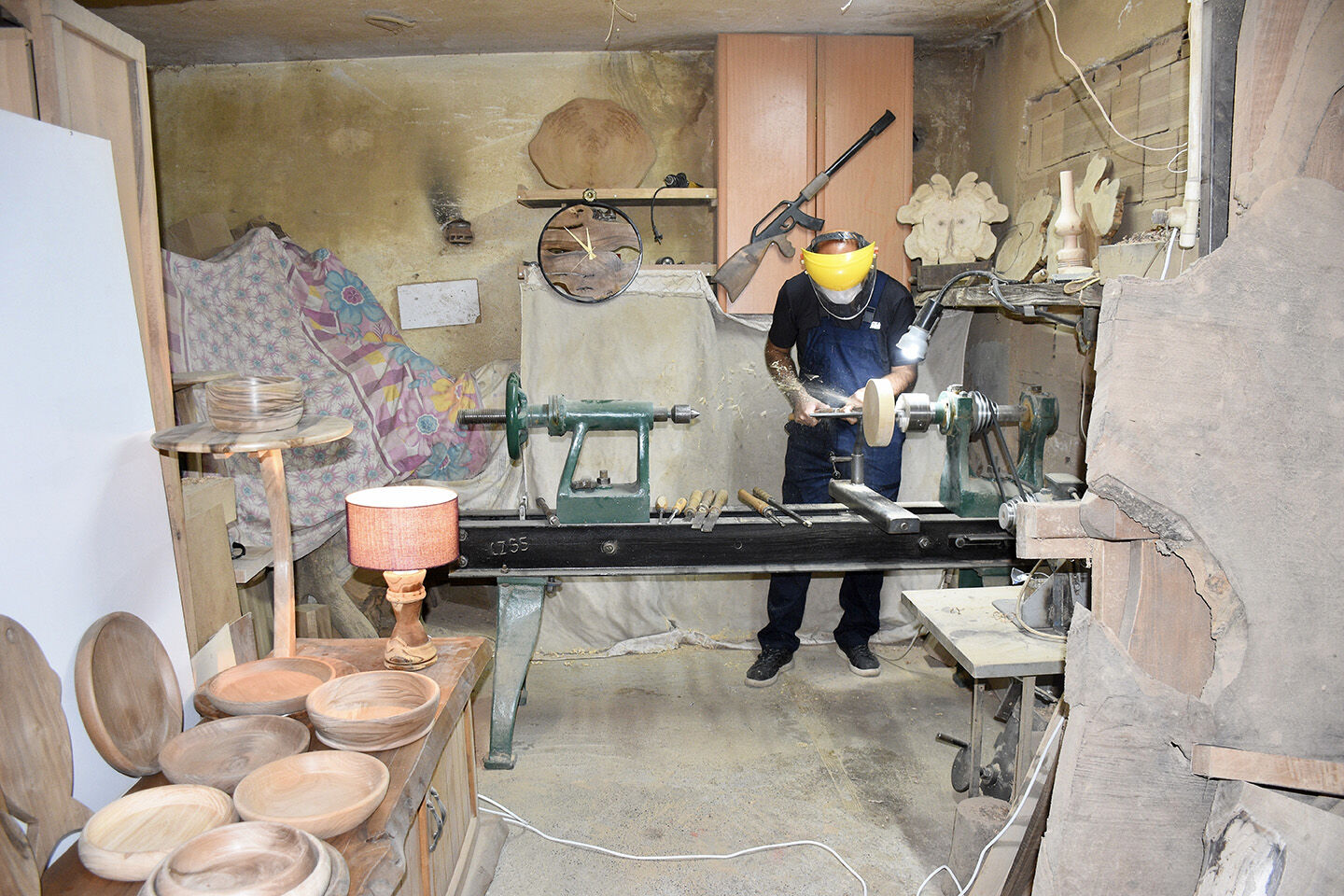 Mesai saatlerinin dışında vaktinin büyük bölümünü atölyede geçiren Kaçar, ahşaptan dekoratif süs ve mutfak eşyası üretiyor.