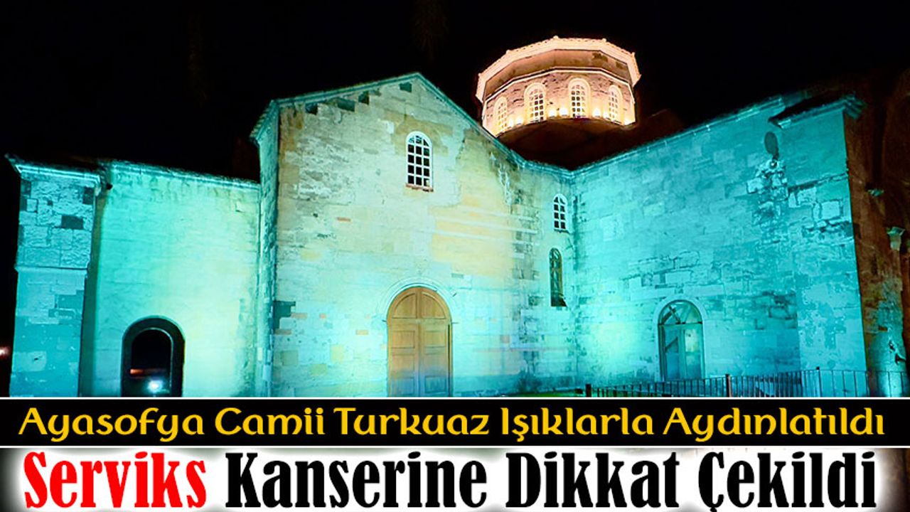 Bu kapsamda İl Sağlık Müdürlüğümüz tarafından Trabzon Vakıflar Bölge Müdürlüğü ile yapılan görüşmeler ve iş birliği sonucu tarihi Ayasofya Camii Ocak Ayı boyunca serviks kanseri farkındalık rengi olan turkuaz renkte ışıklandırılmıştır.