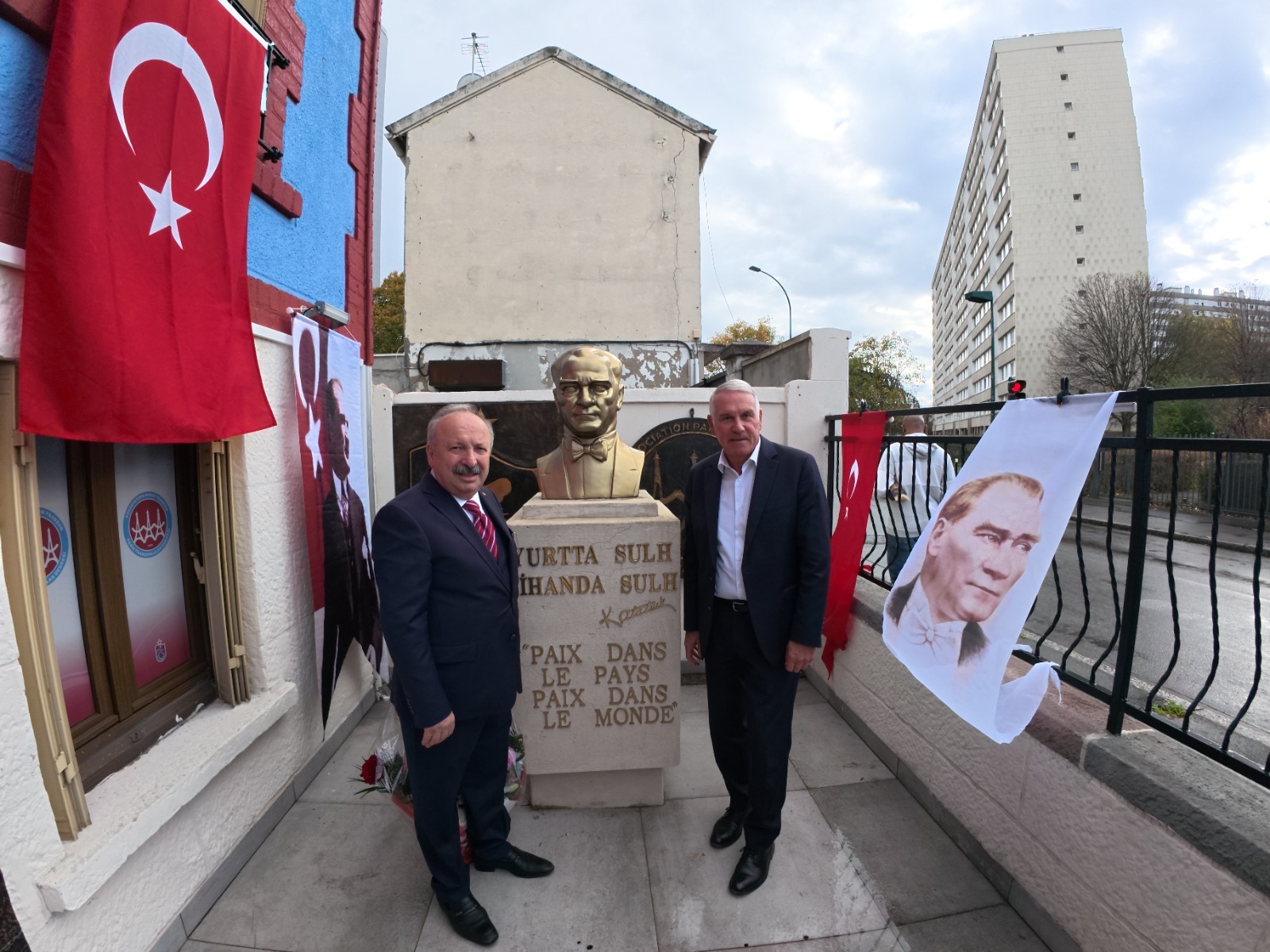 "Fransa’da ilk ve tek olan; Büyük Önderimiz Mustafa Kemal Atatürk’ün büstünün yeniden yerine konulması vesilesiyle düzenlenen törende bulunmanın mutluluğunu yaşıyorum."
