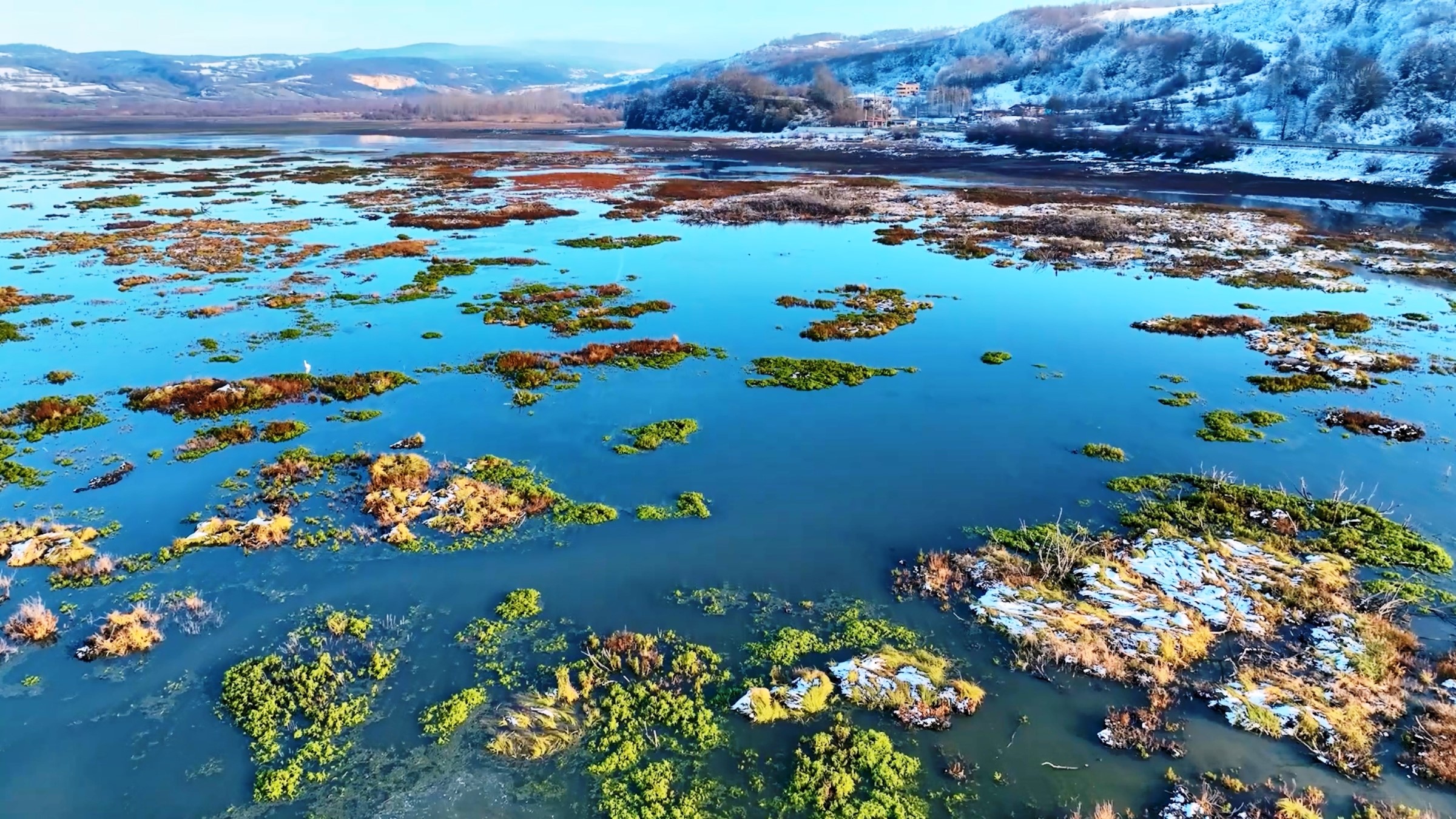 Samsun’da yer alan ve koruma altındaki alanlardan biri olan Ladik Gölü Sulak Alanı, yoğun kar yağışıyla tamamen beyaza büründü. Yaz aylarında göçmen kuşlara ve çeşitli yaban hayvanlarına ev sahipliği yapan göl, kış mevsiminde de doğal yaşamın sürdüğü önemli alanlardan biri olma özelliğini koruyor.